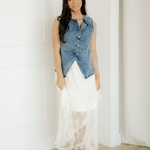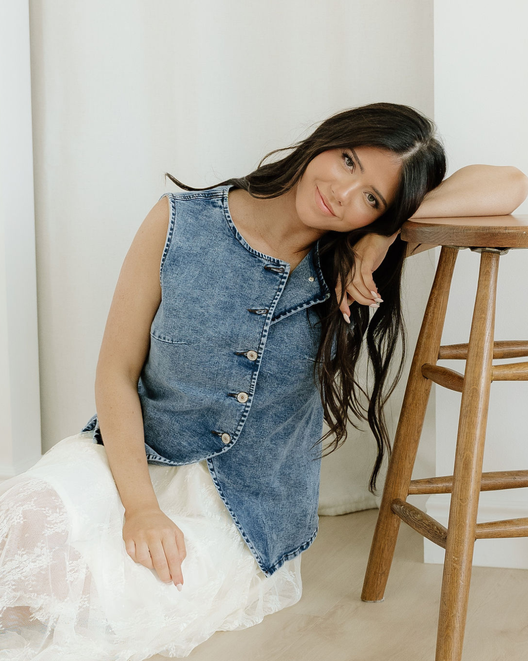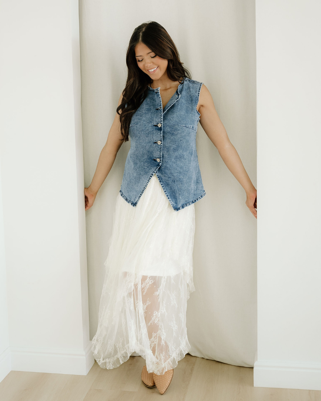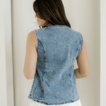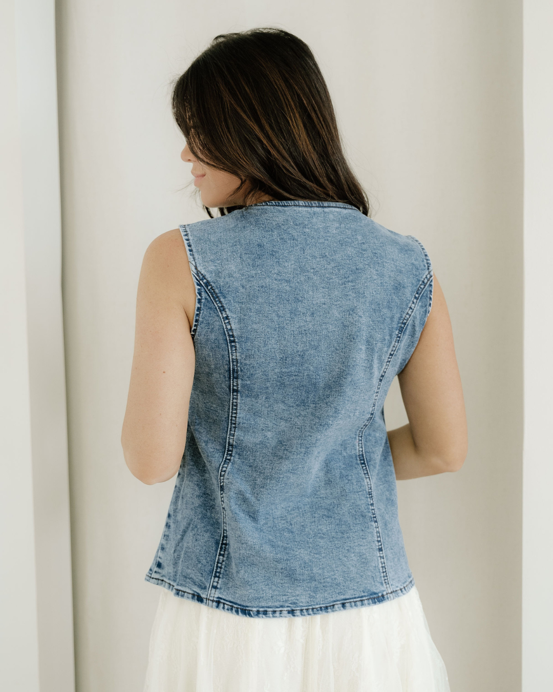 Jolene Buttoned Front Slit Denim Vest - Ashleigh Blue