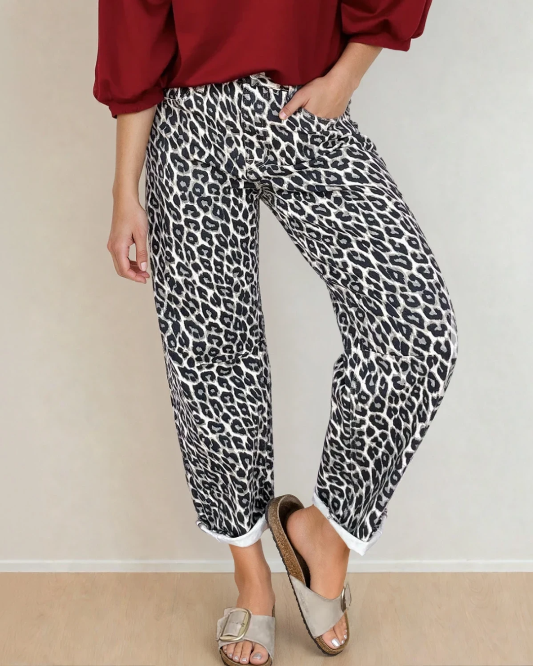 Winona Leopard Print Barrel Jeans