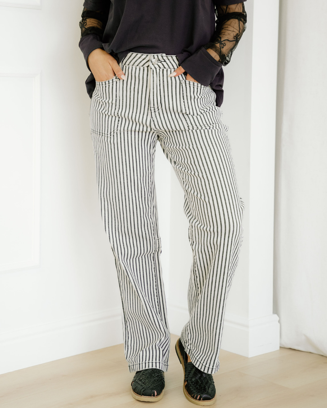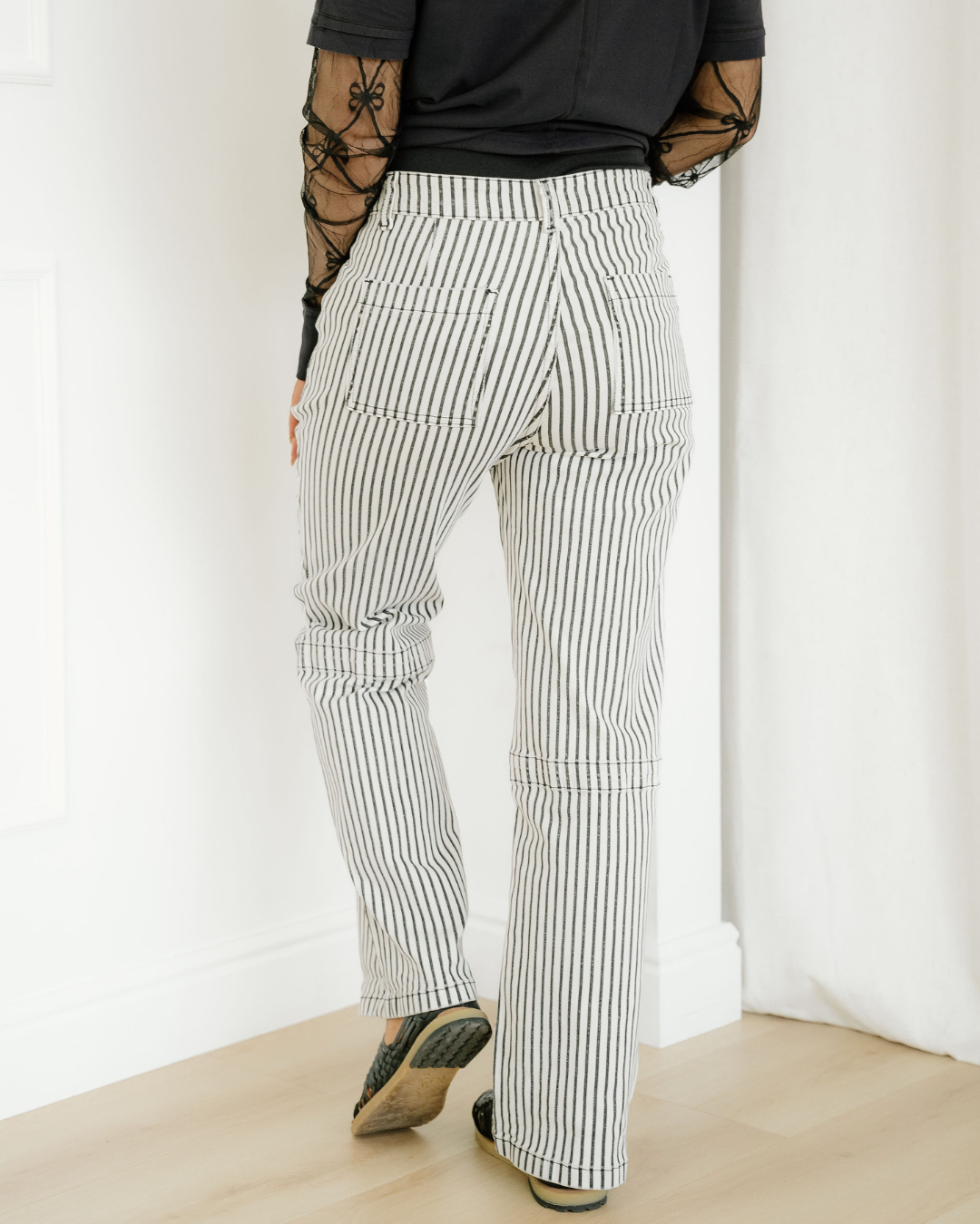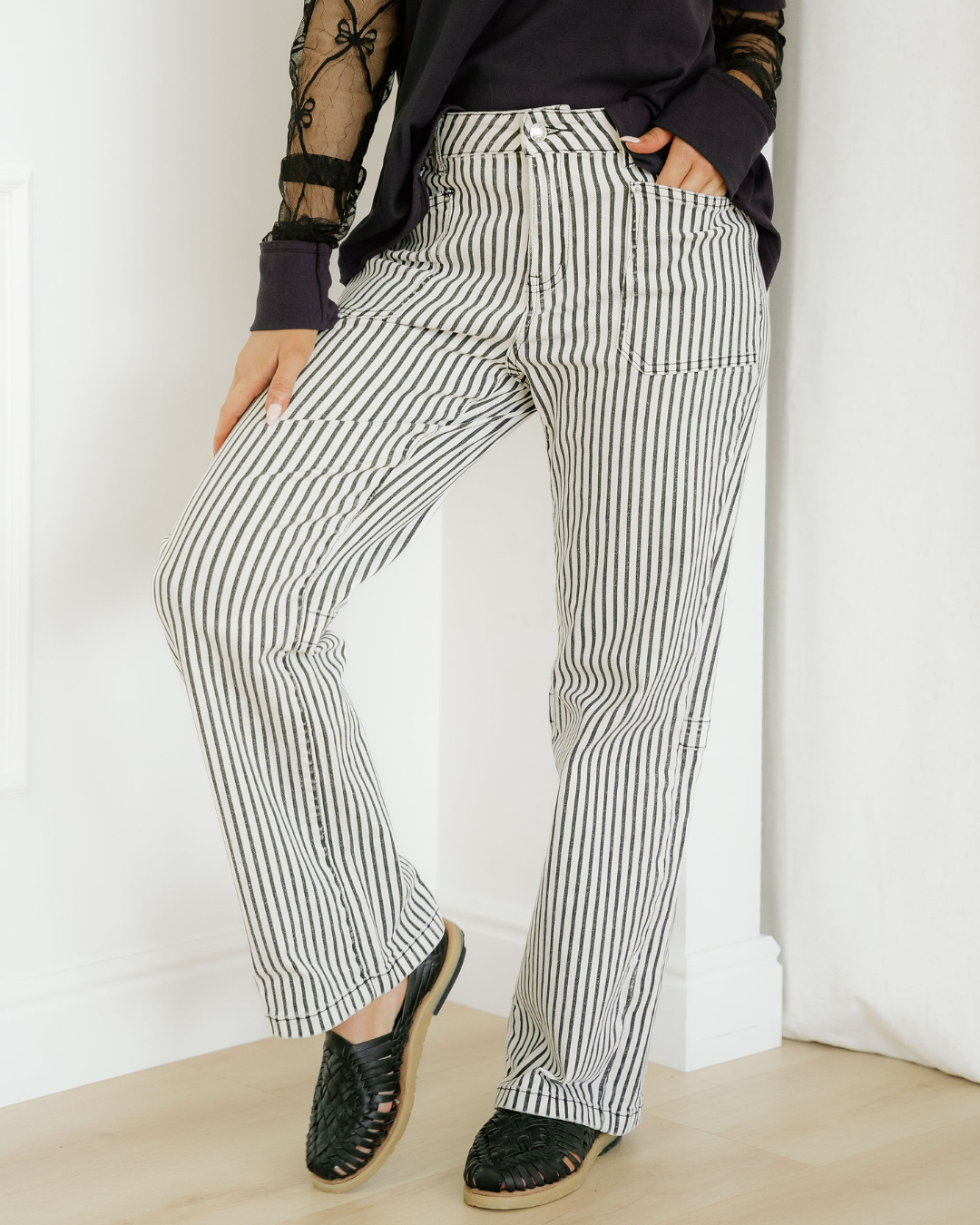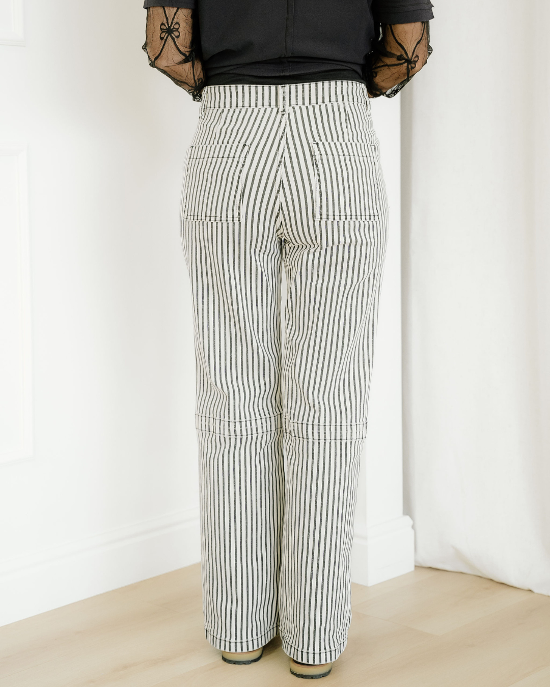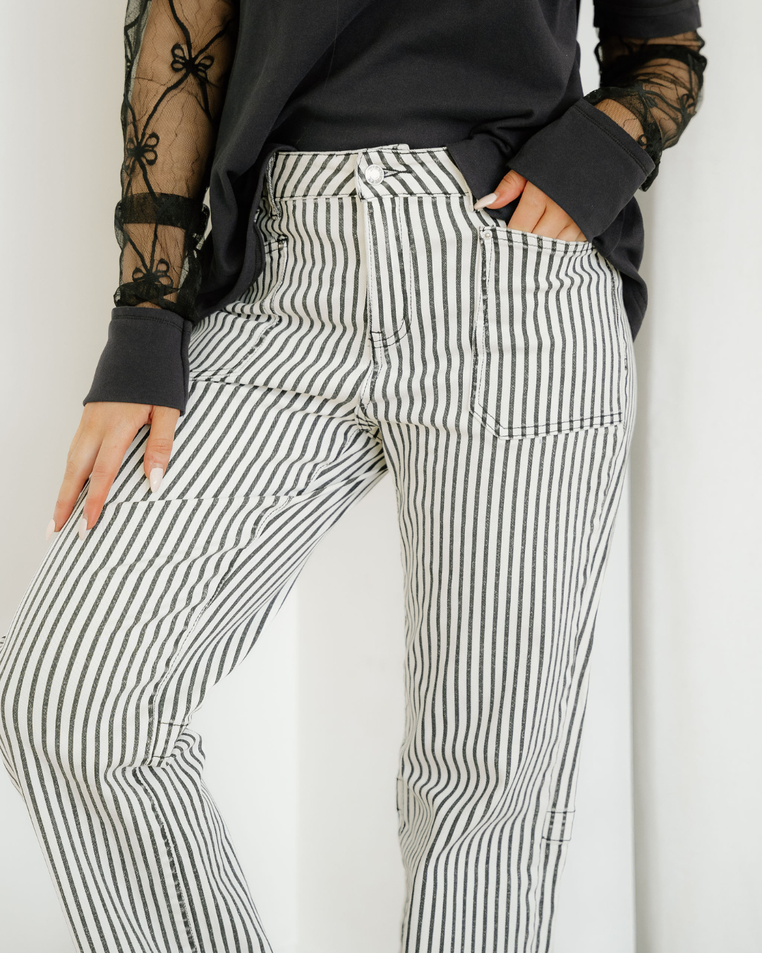 Cassie Stripe Patch Pocket High Waist Shift Denim Jeans