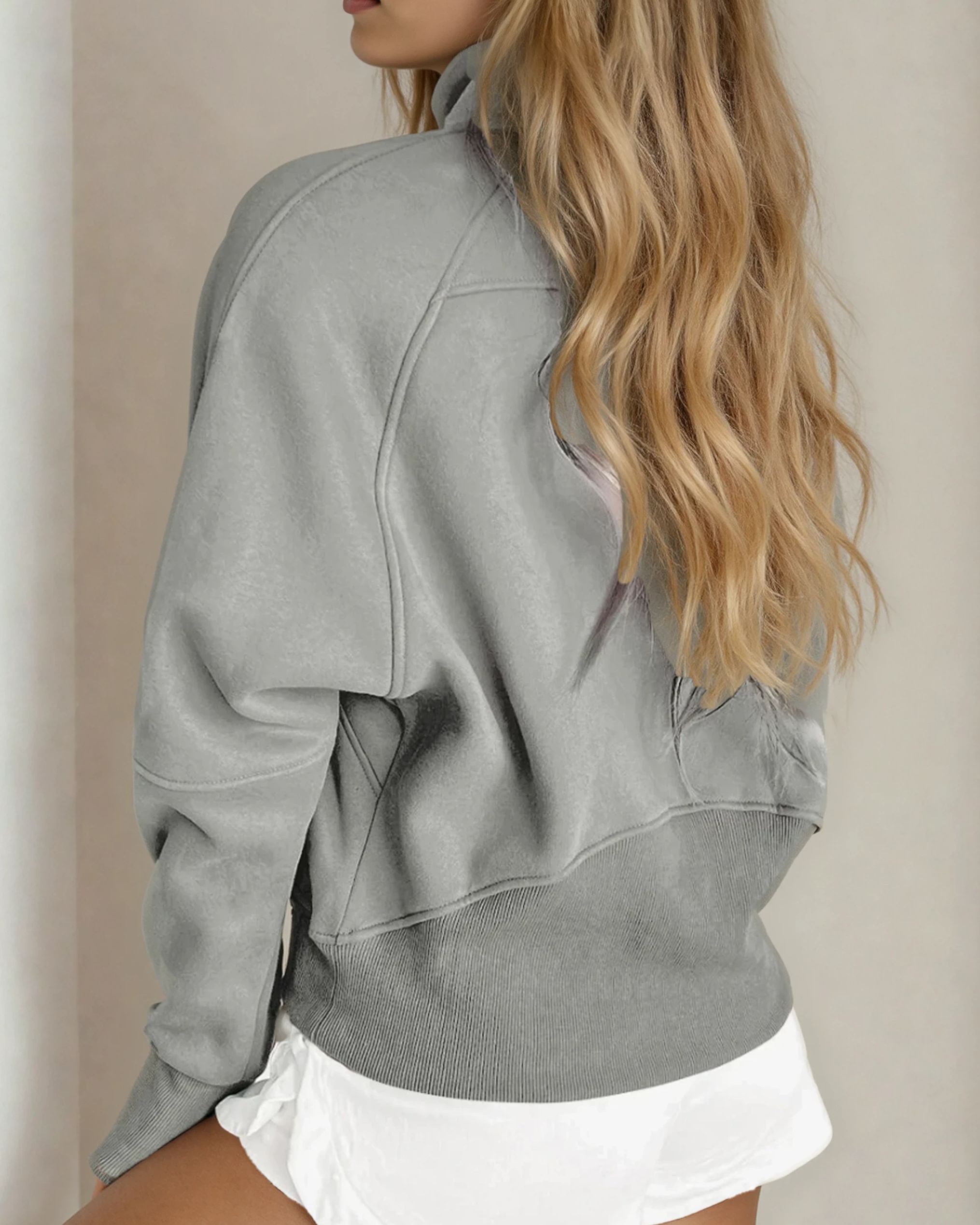 • The stand collar adds a modern touch, while the ribbed design provides a unique texture.