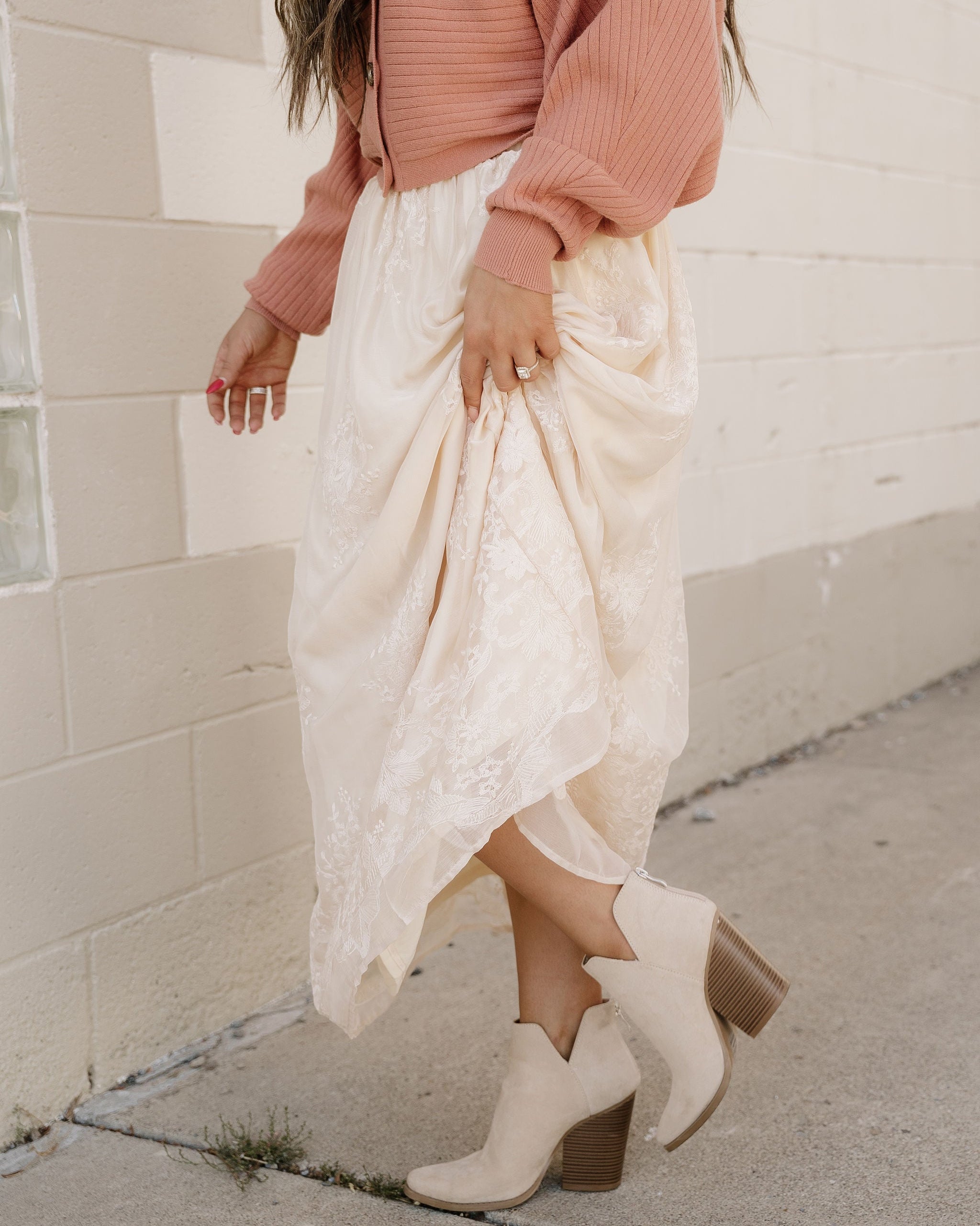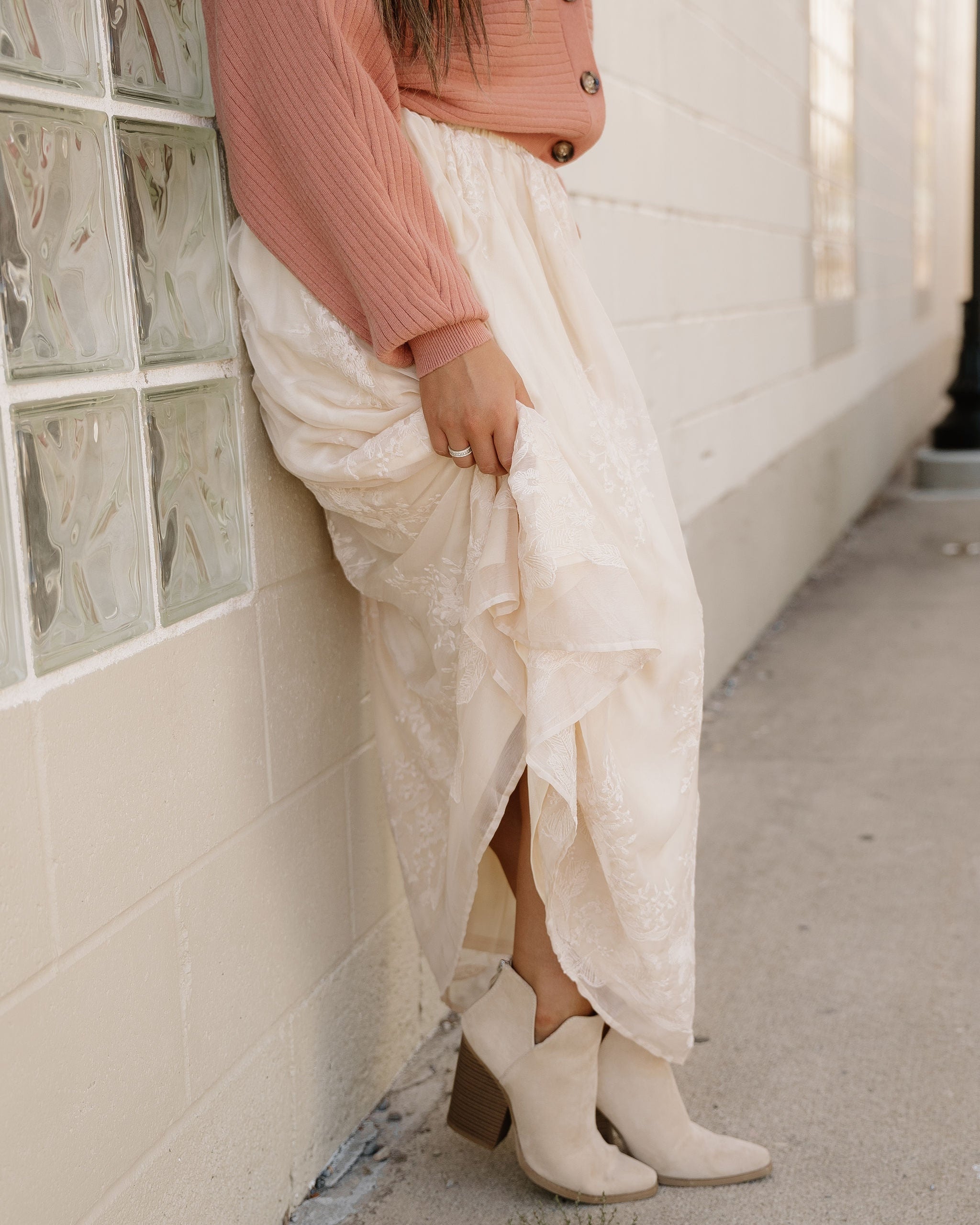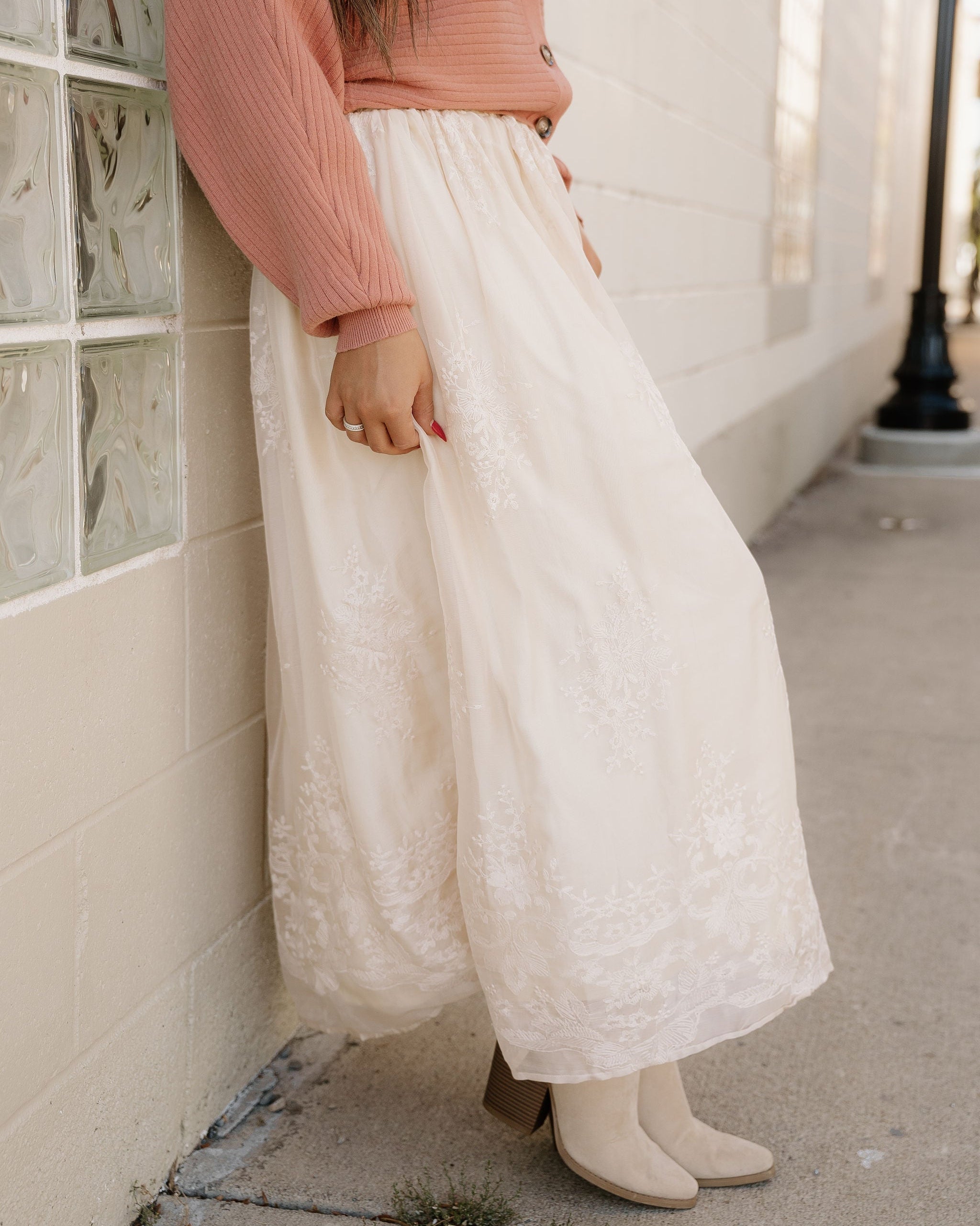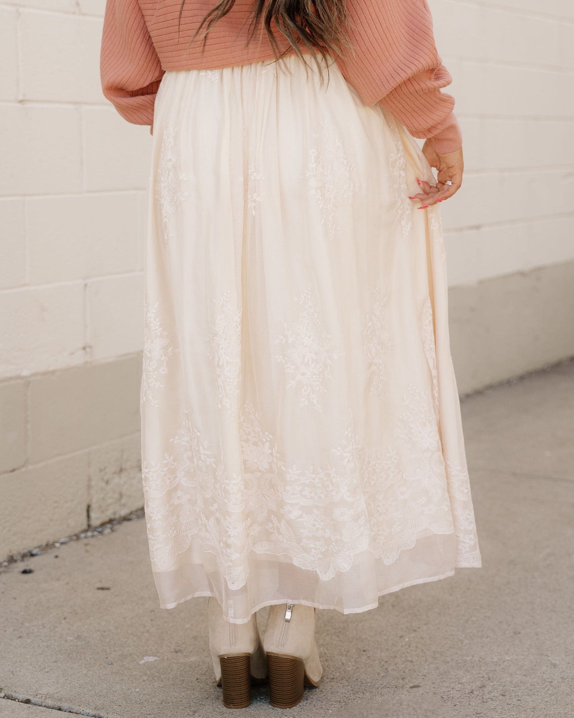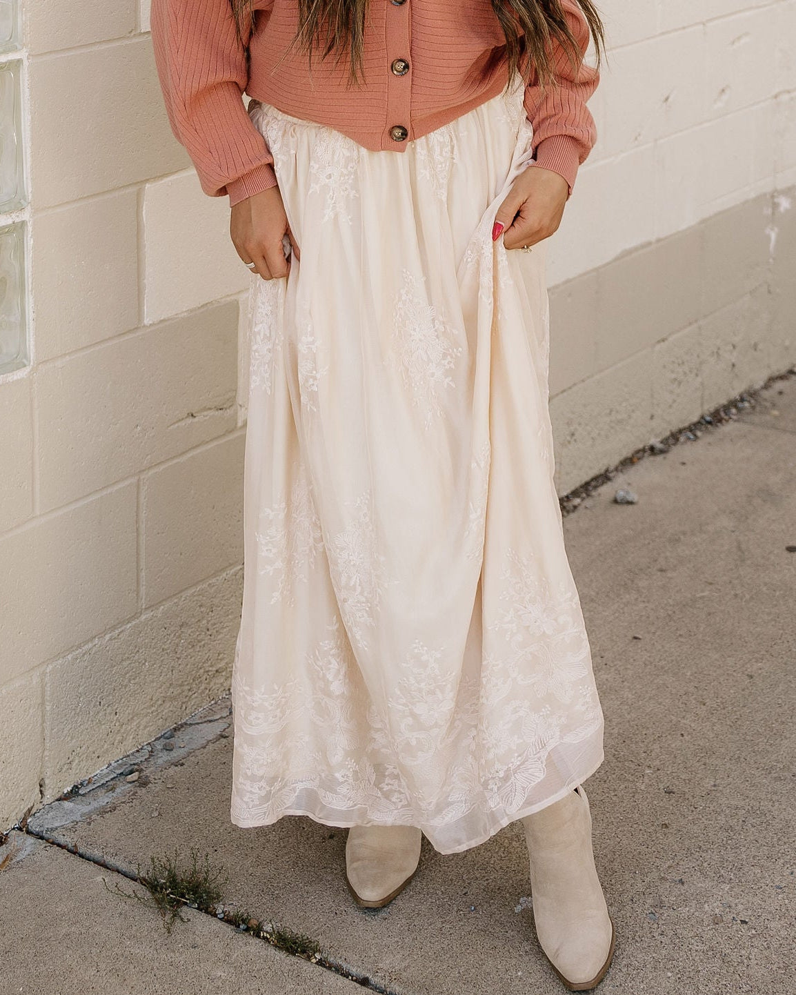 - The detailed embroidery on this skirt adds a unique texture and visual interest.