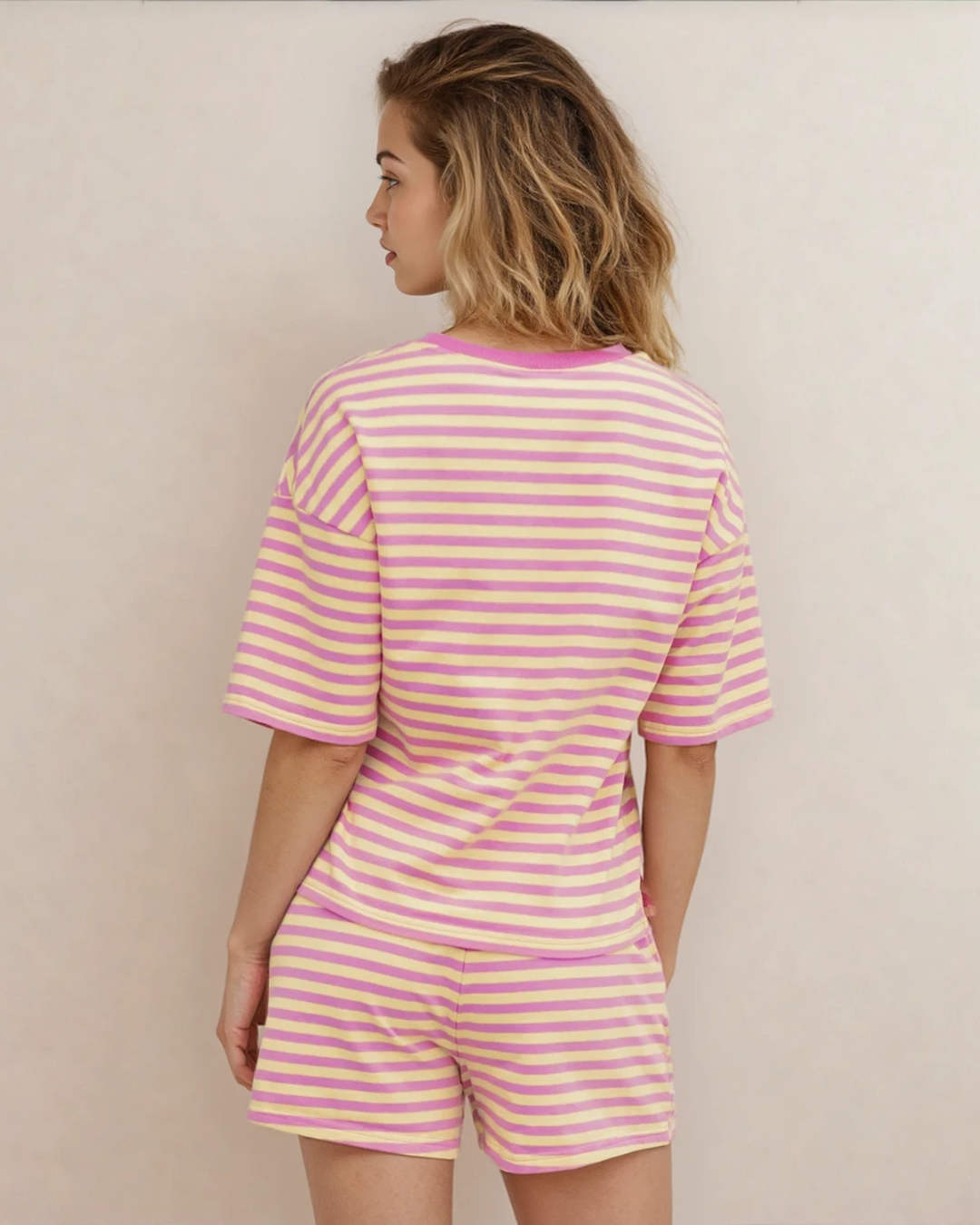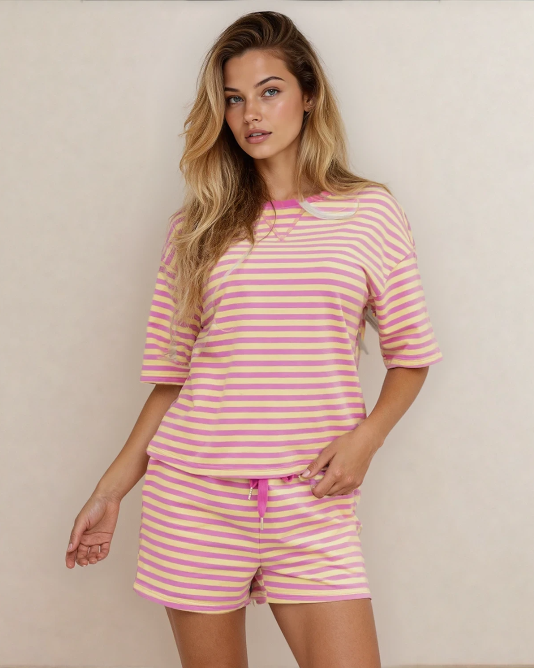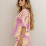 PREORDER Elsa Stripe Drop Shoulder Boxy Casual Terry Short Set - Sherbet