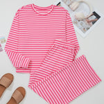 Amayah Stripe Drop Shoulder Round Neck Top and Buttoned Straight Pants Two Piece Set