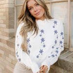 - Crafted in a crisp white hue, this casual cropped sweater is adorned with intricate floral embroidery for a touch of elegance.