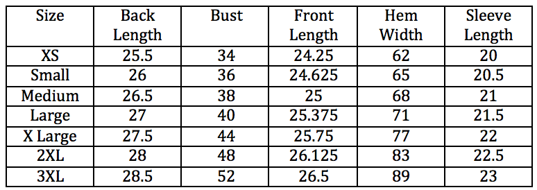 - Size Chart