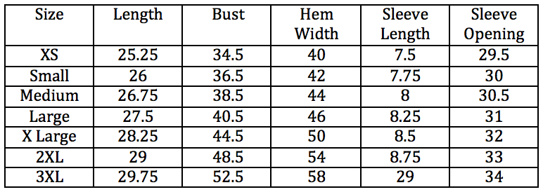 - Size Chart