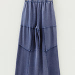 PREORDER Hazel Mineral Wash Tiered Wide Leg Patchwork Drawstring Pants - Blue | Dropship