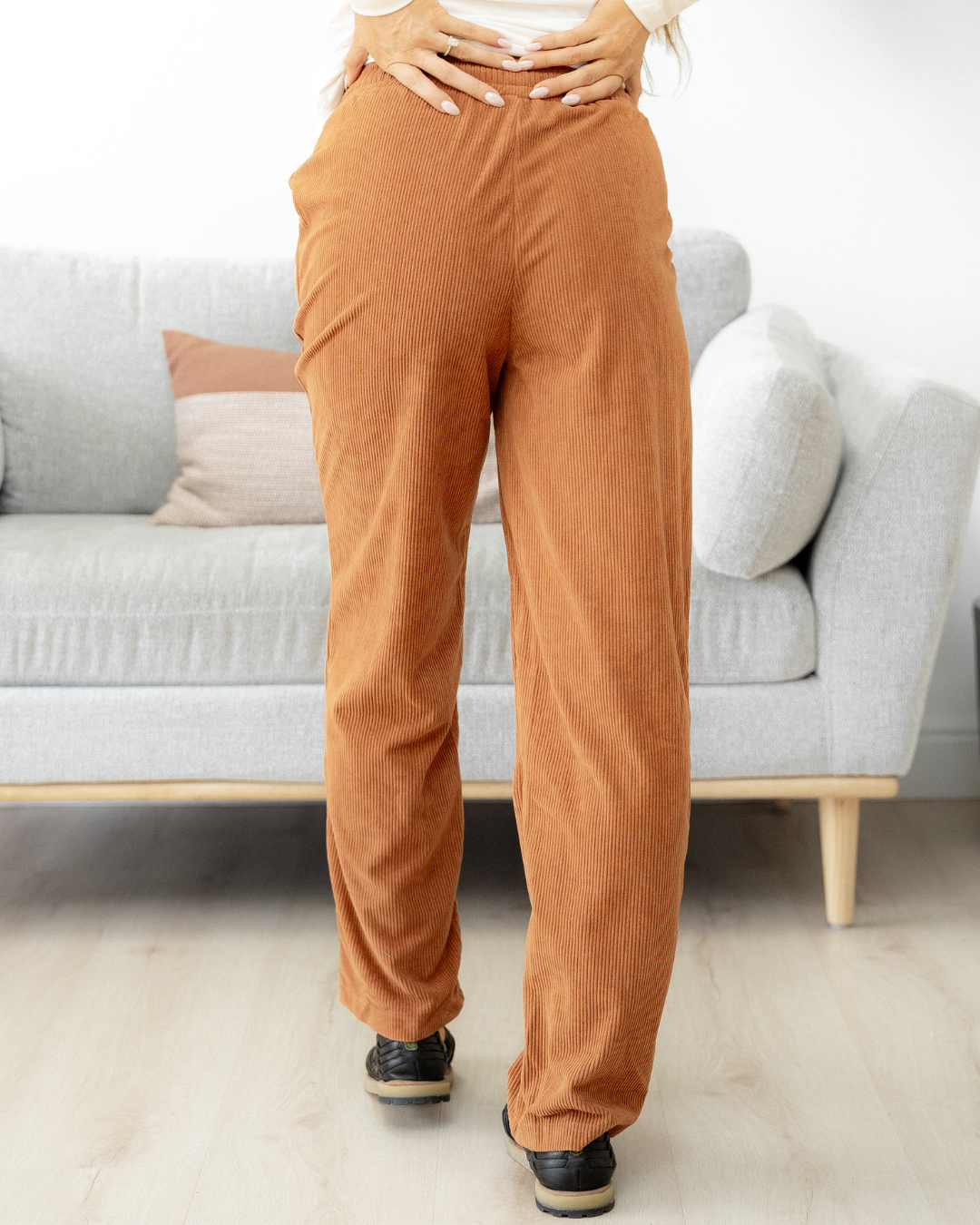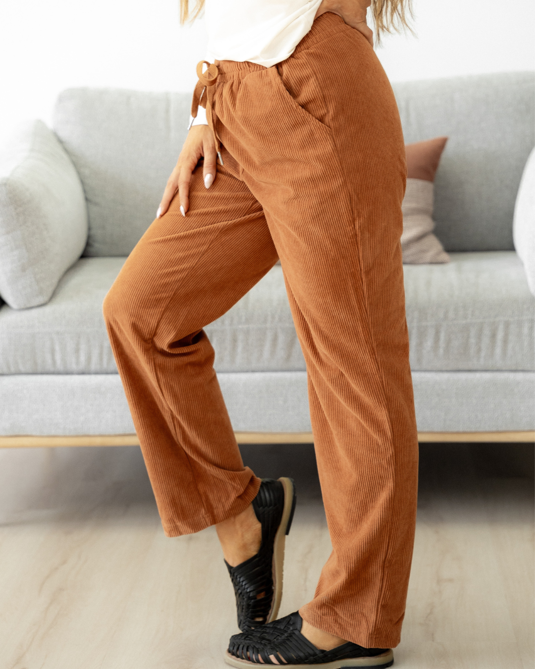 PREORDER Eloise Drawstring Elastic Waist Casual Corduroy Pants - Chestnut | Dropship