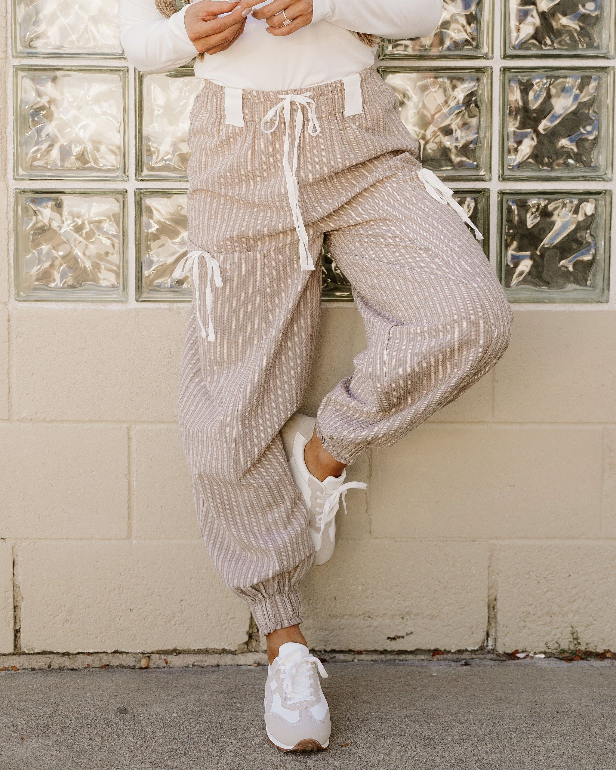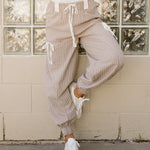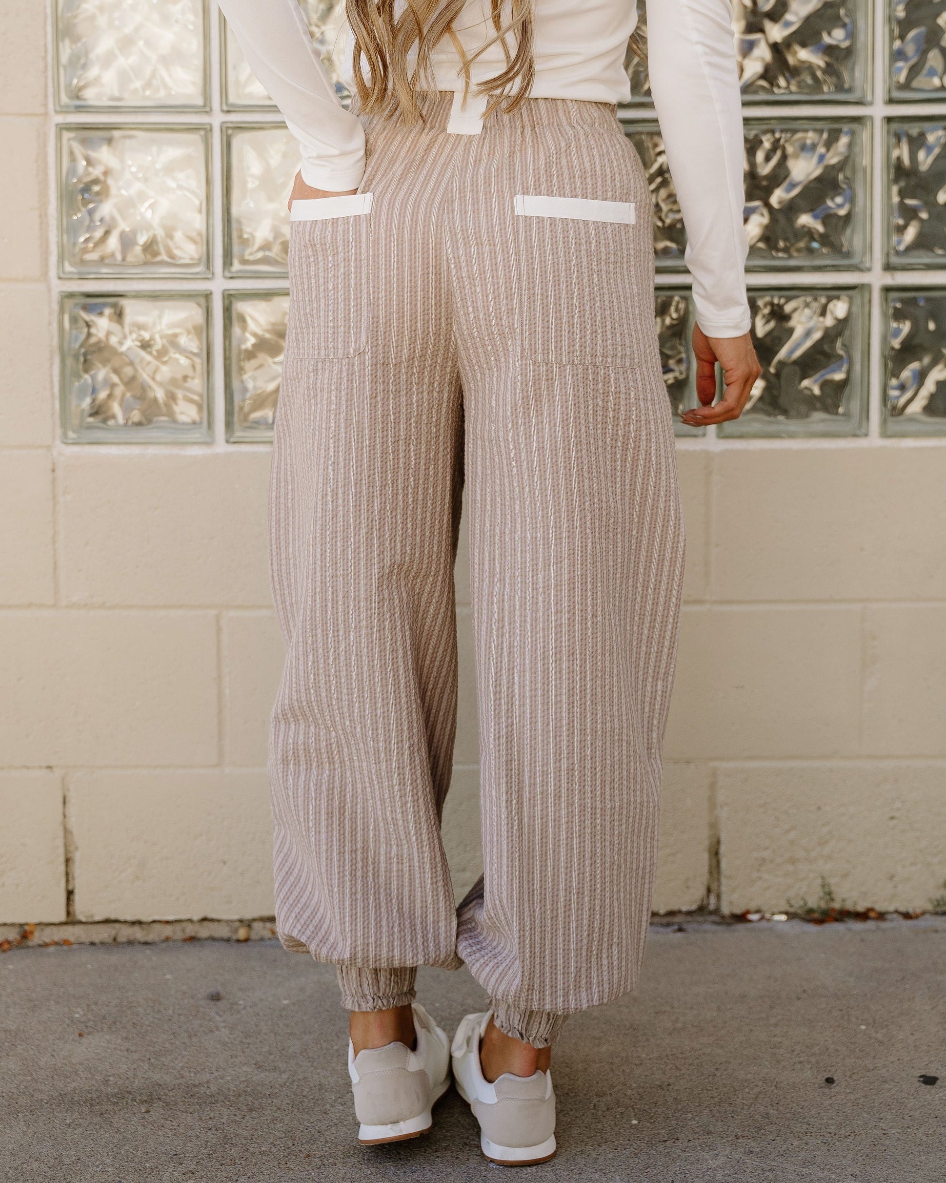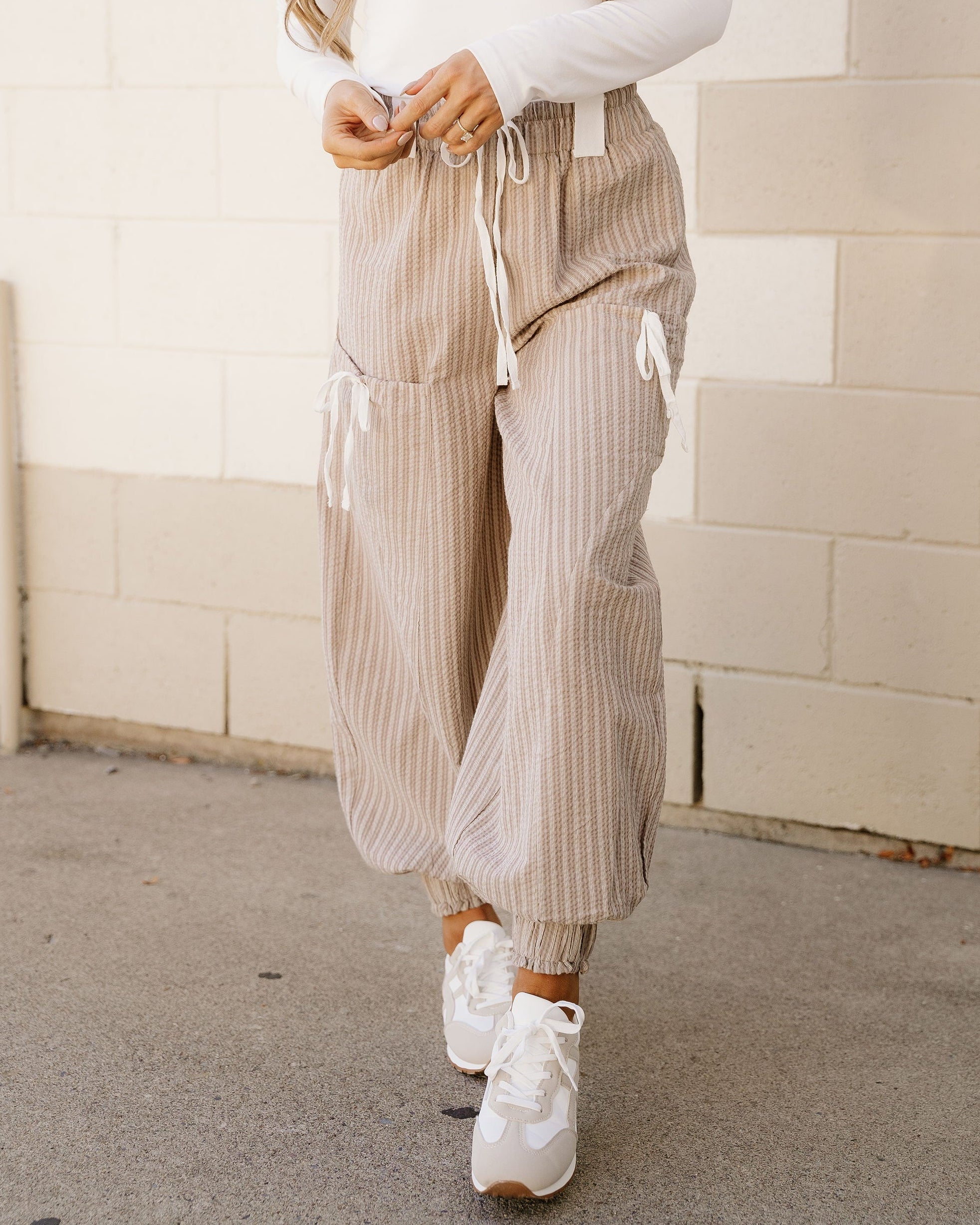 - Available at competitive wholesale prices, these brown striped lantern pants are a must-have addition to your fashion inventory.