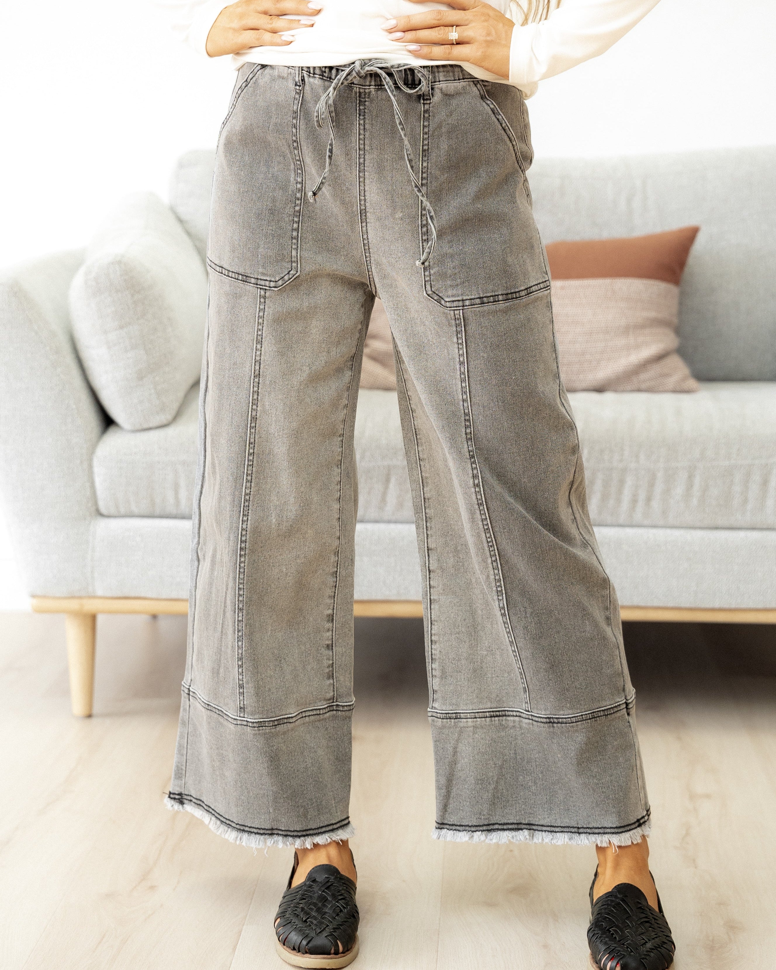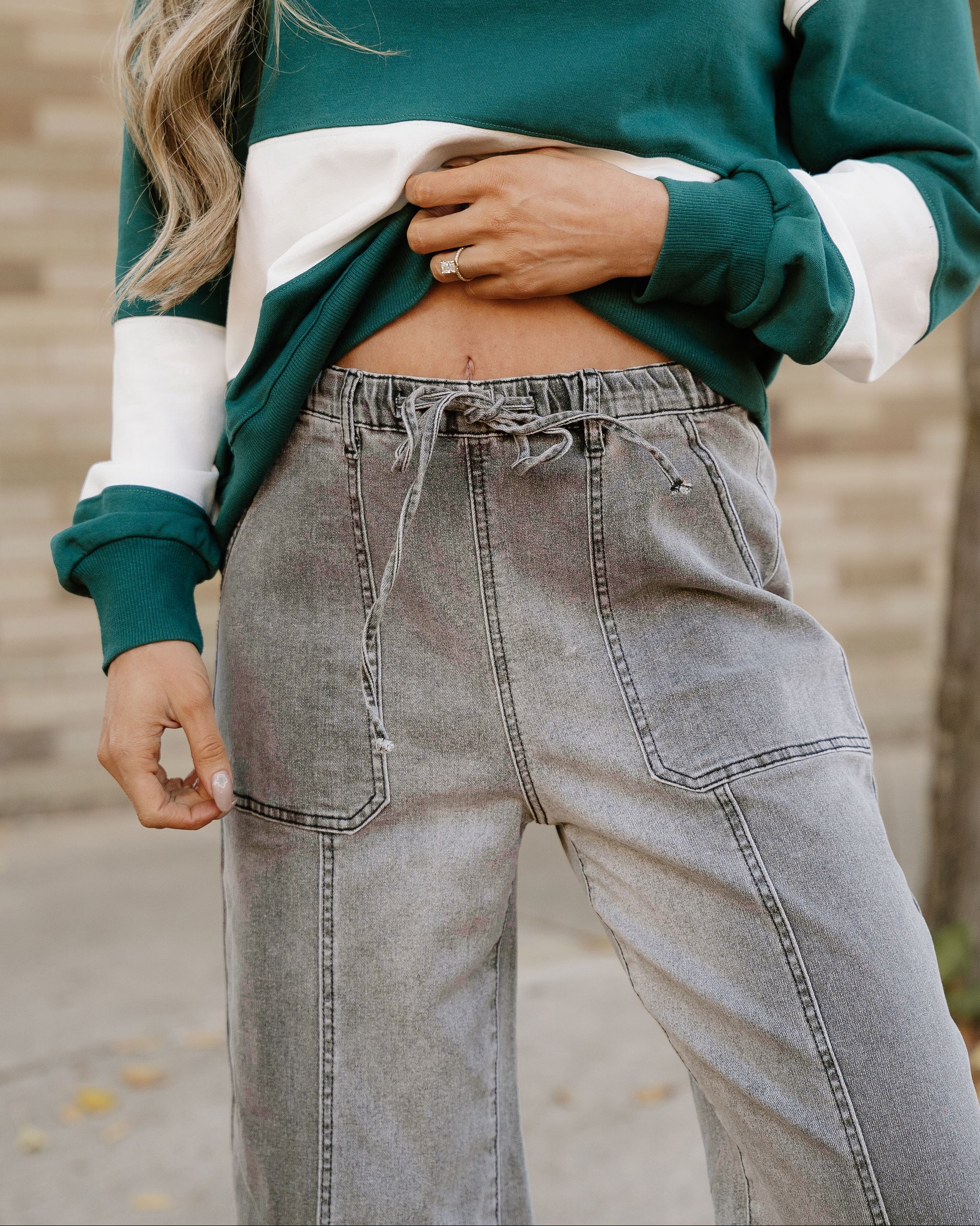 - The drawstring waist adds a touch of uniqueness to these jeans, providing a customizable fit that ensures both style and comfort throughout the day.