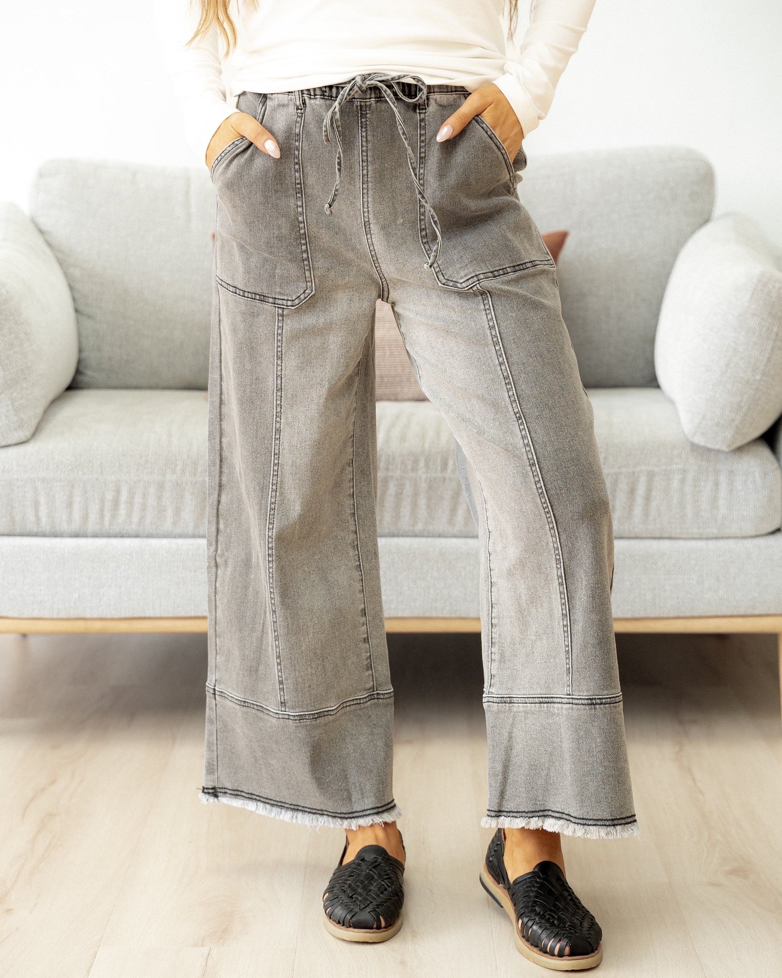 Beau Wide Leg Jeans - Gray Wash | Dropship