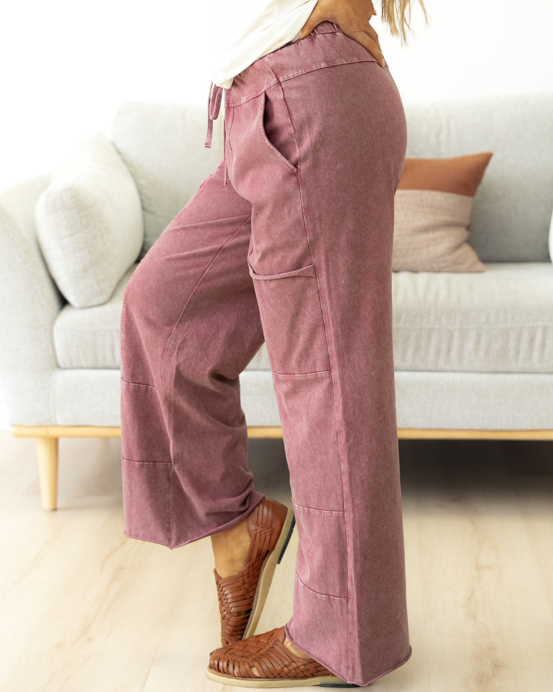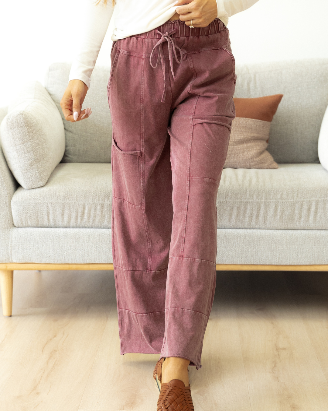 - Featuring a stylish knot detail at the waist and raw hem design, these pants add a touch of edgy flair to any outfit.