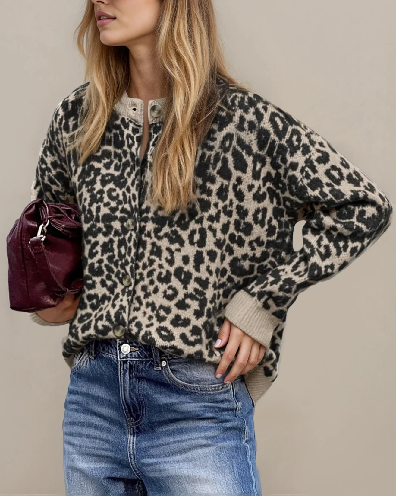 - Elevate your casual wardrobe with this cardigan, featuring a trendy leopard print design for a touch of wild flair.