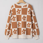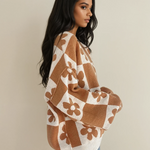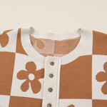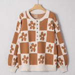 PREORDER Flower Power Checkered Henley Sweater - Camel | Dropship