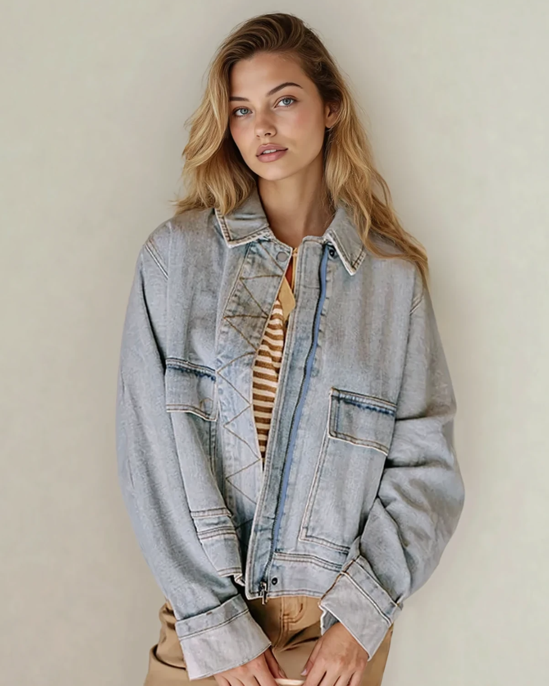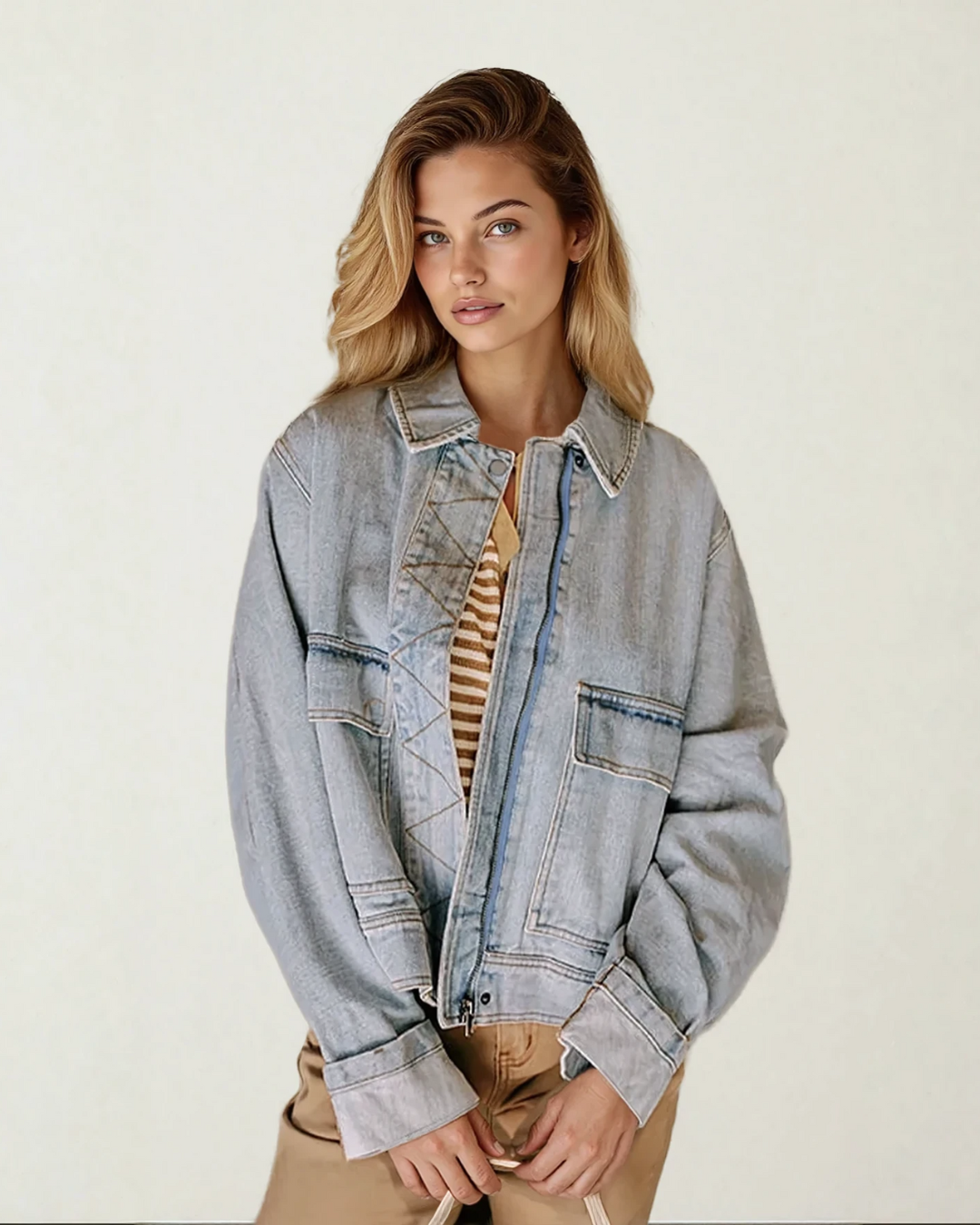 - This womens denim jacket is a must-have for chic city vibes.