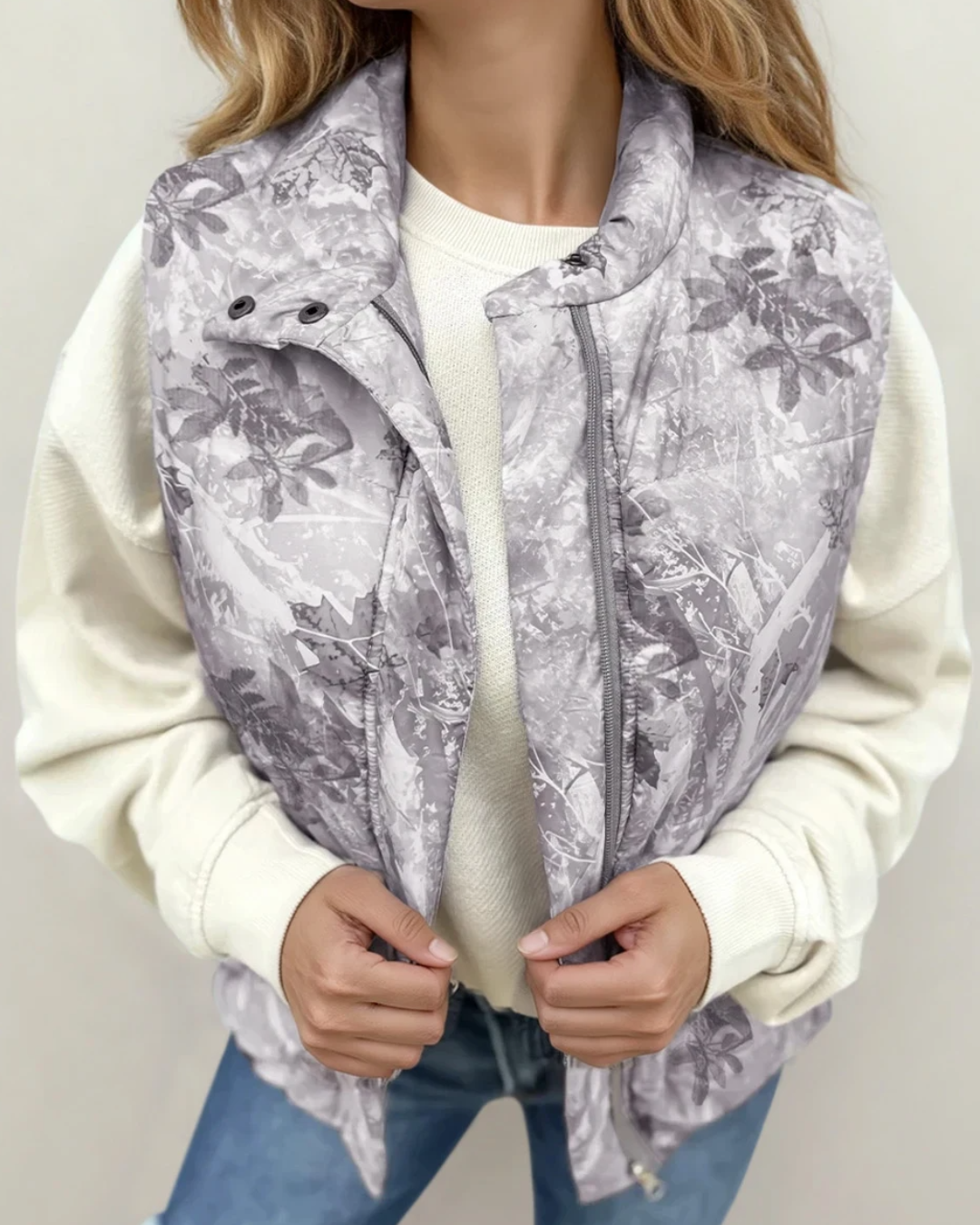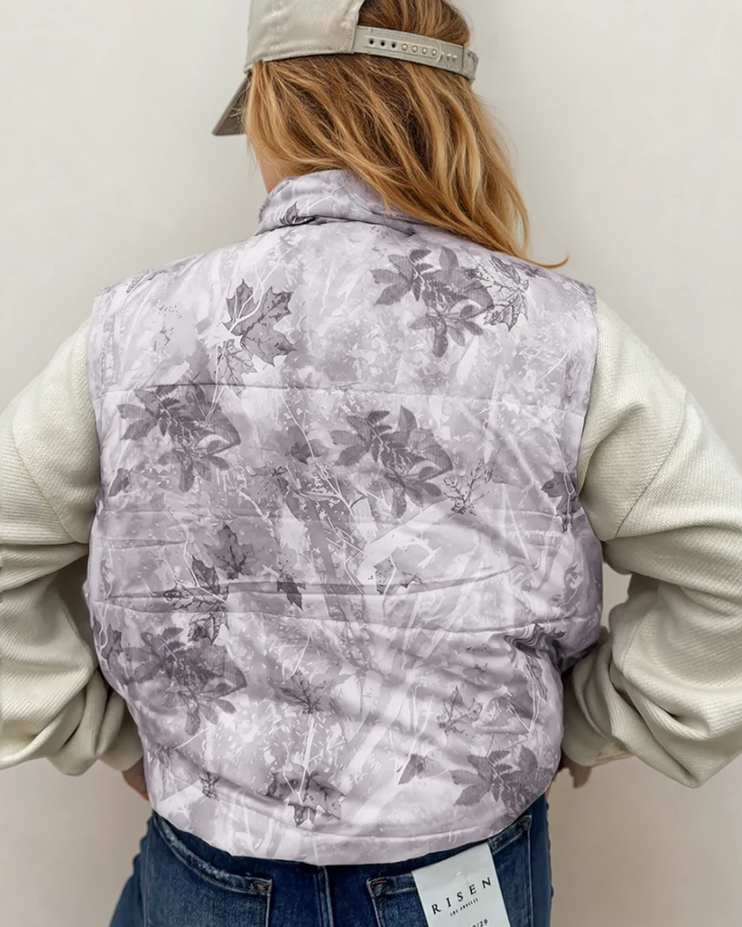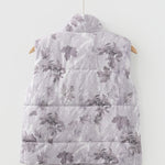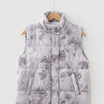 PREORDER Tessa Camo Leaf Print Winter Puffer Vest - Gray | Dropship