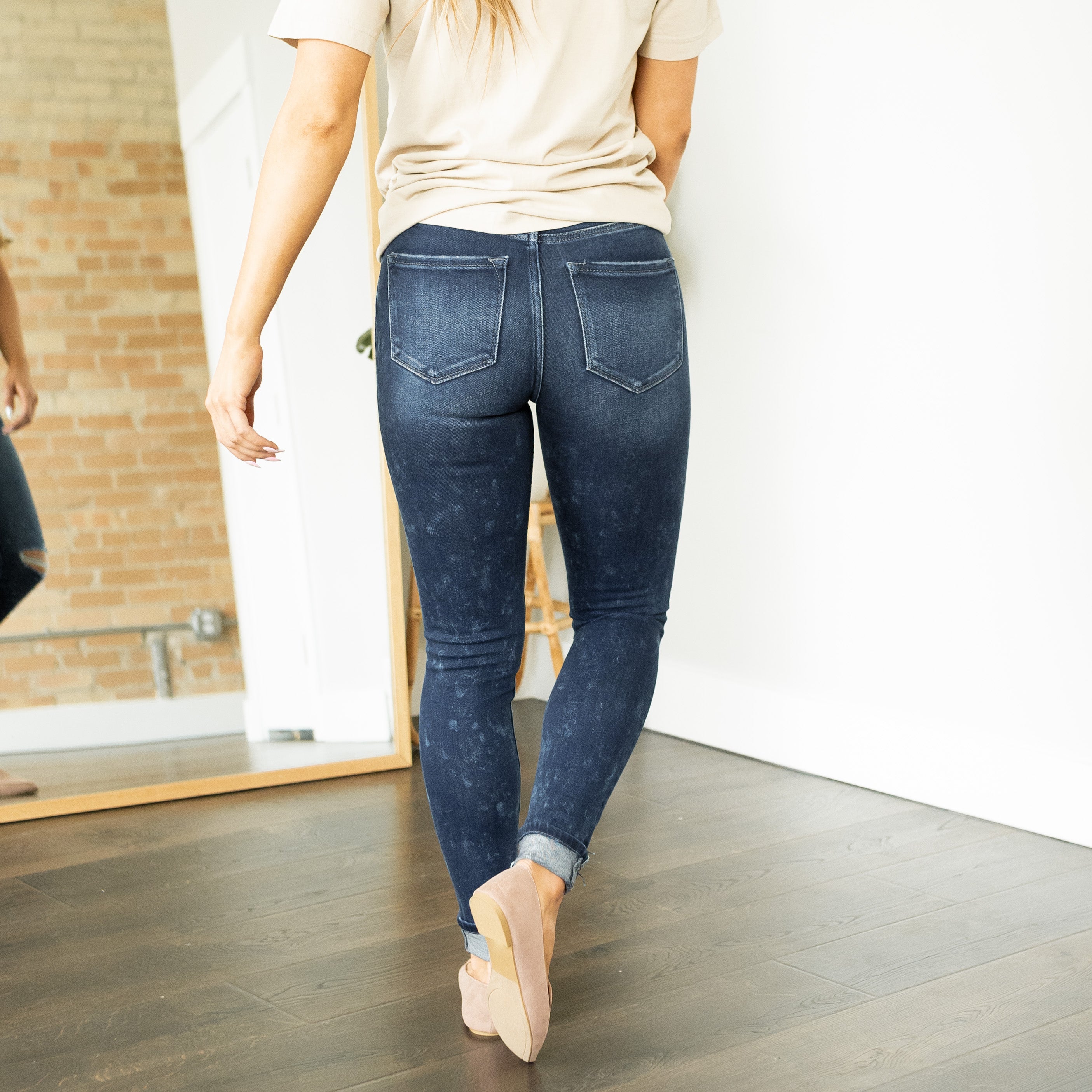 HIGH RISE BUTTON DOWN CUFFED ANKLE SKINNY
