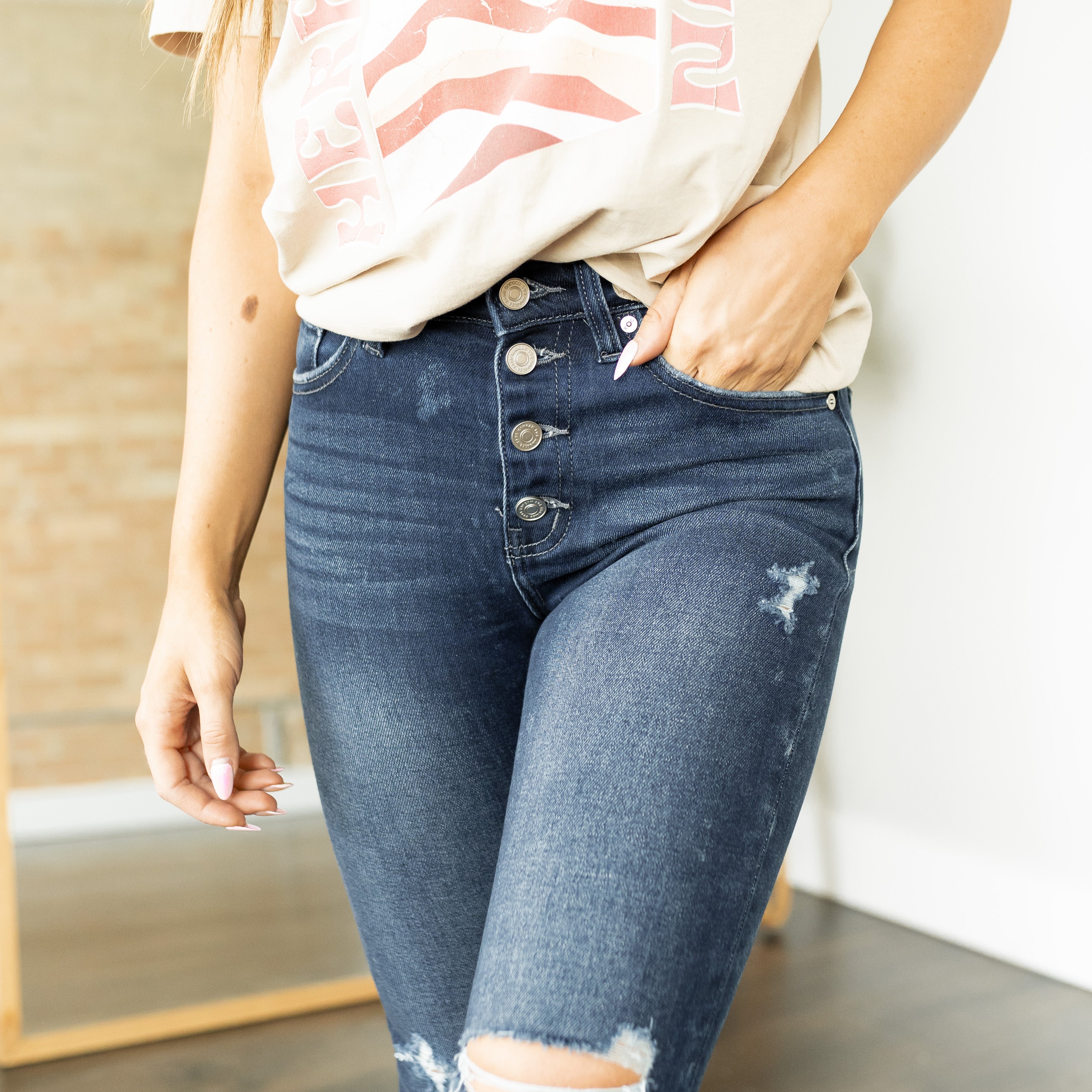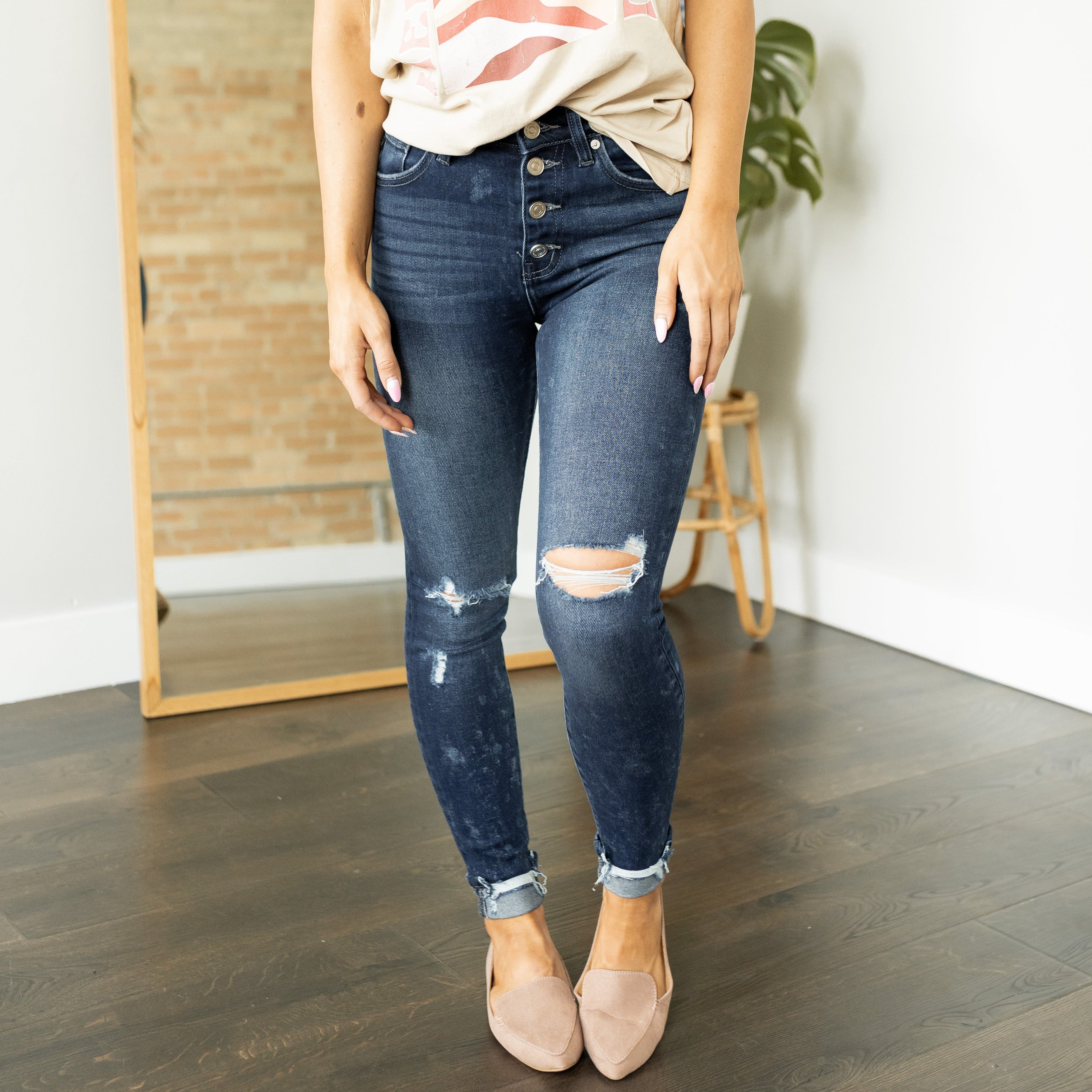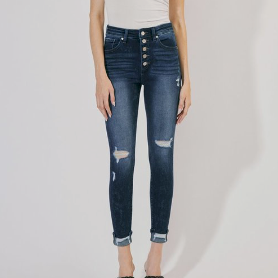 Novah Button Fly Ankle Skinny Jeans - KanCan