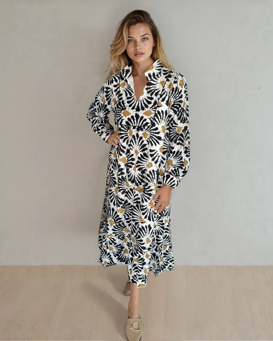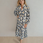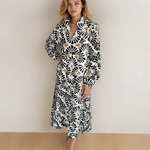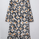 Lucille Abstract Floral Print Split V Neck Long Dress with Sleeves | Dropship