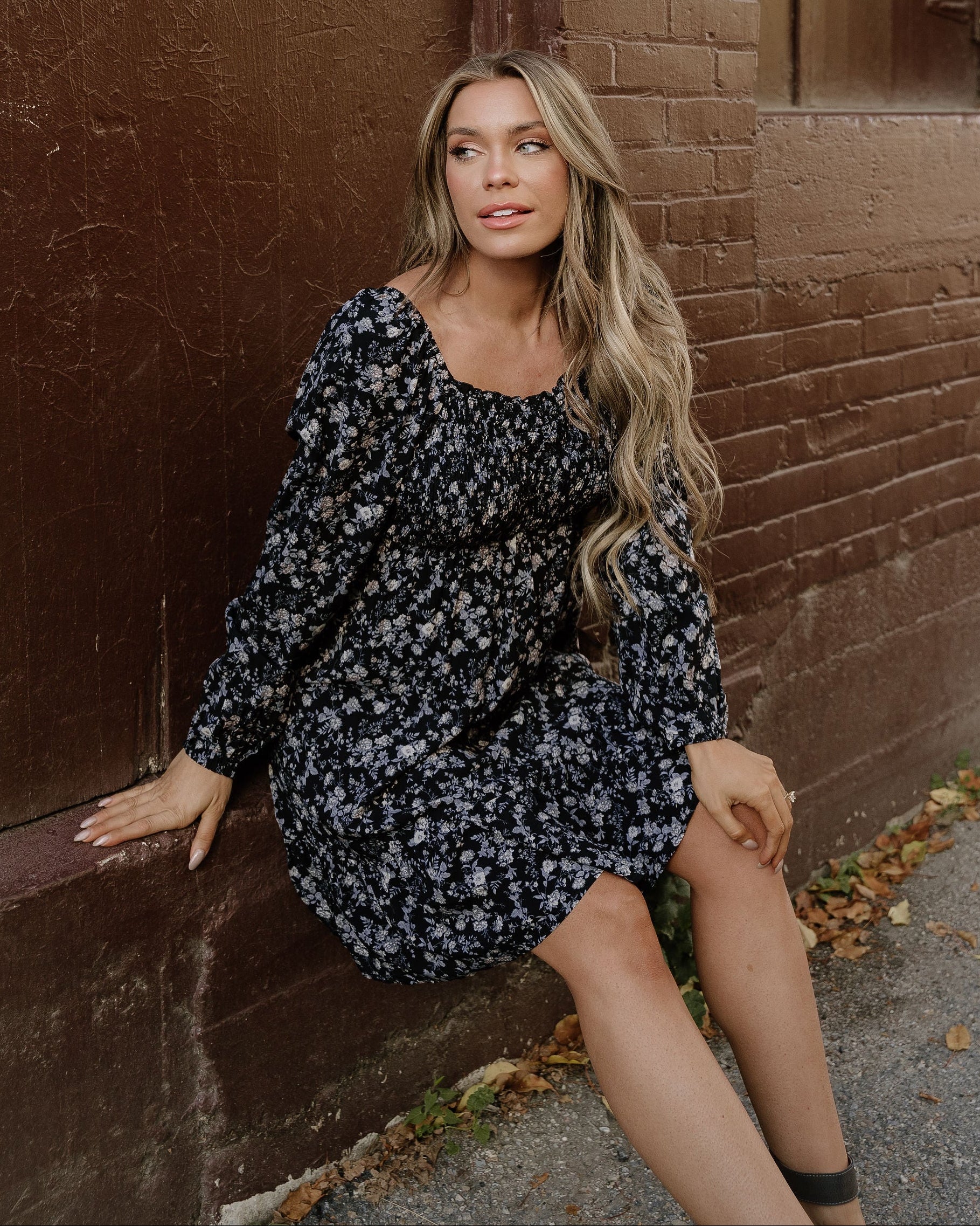 • Embrace bohemian spirit in this floral mini dress. The intricate floral print adds a touch of whimsy to any look.