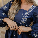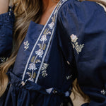 • Embrace bohemian charm with the blue elegant floral shift dress, featuring intricate floral patterns for a sophisticated look.