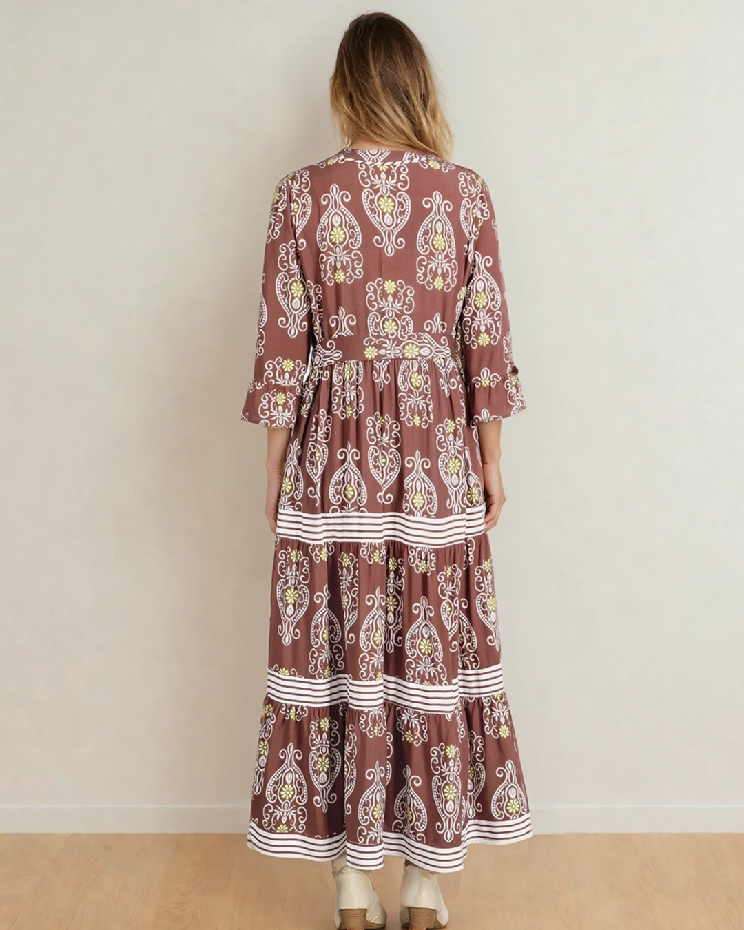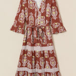 PREORDER Harmony Floral Print Belted Striped Trim Tiered Maxi Dress | Dropship