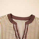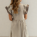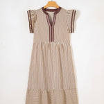 Nyla Double Ruffled Short Sleeve Contrast Trim V Neck Midi Dress - Brown | Dropship