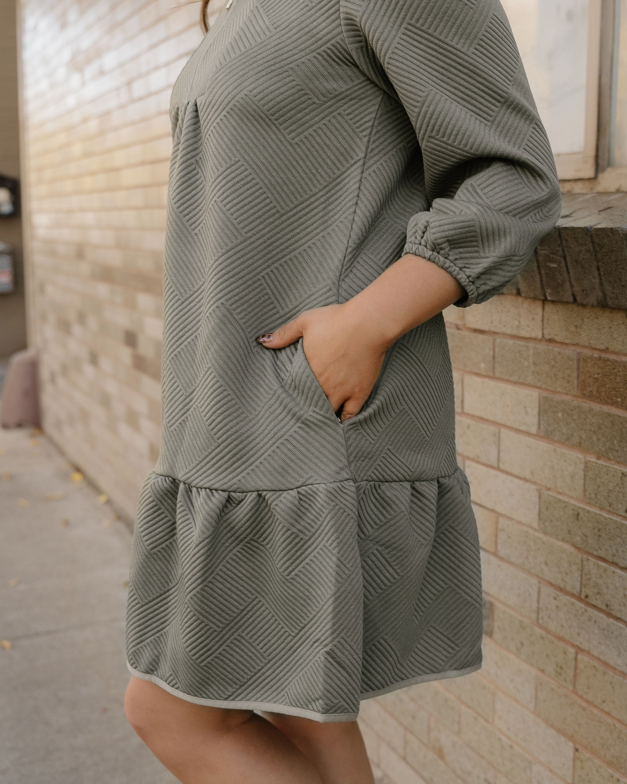 • With textured fabric and bracelet sleeves, this dress offers a unique and sophisticated look that stands out in any crowd.