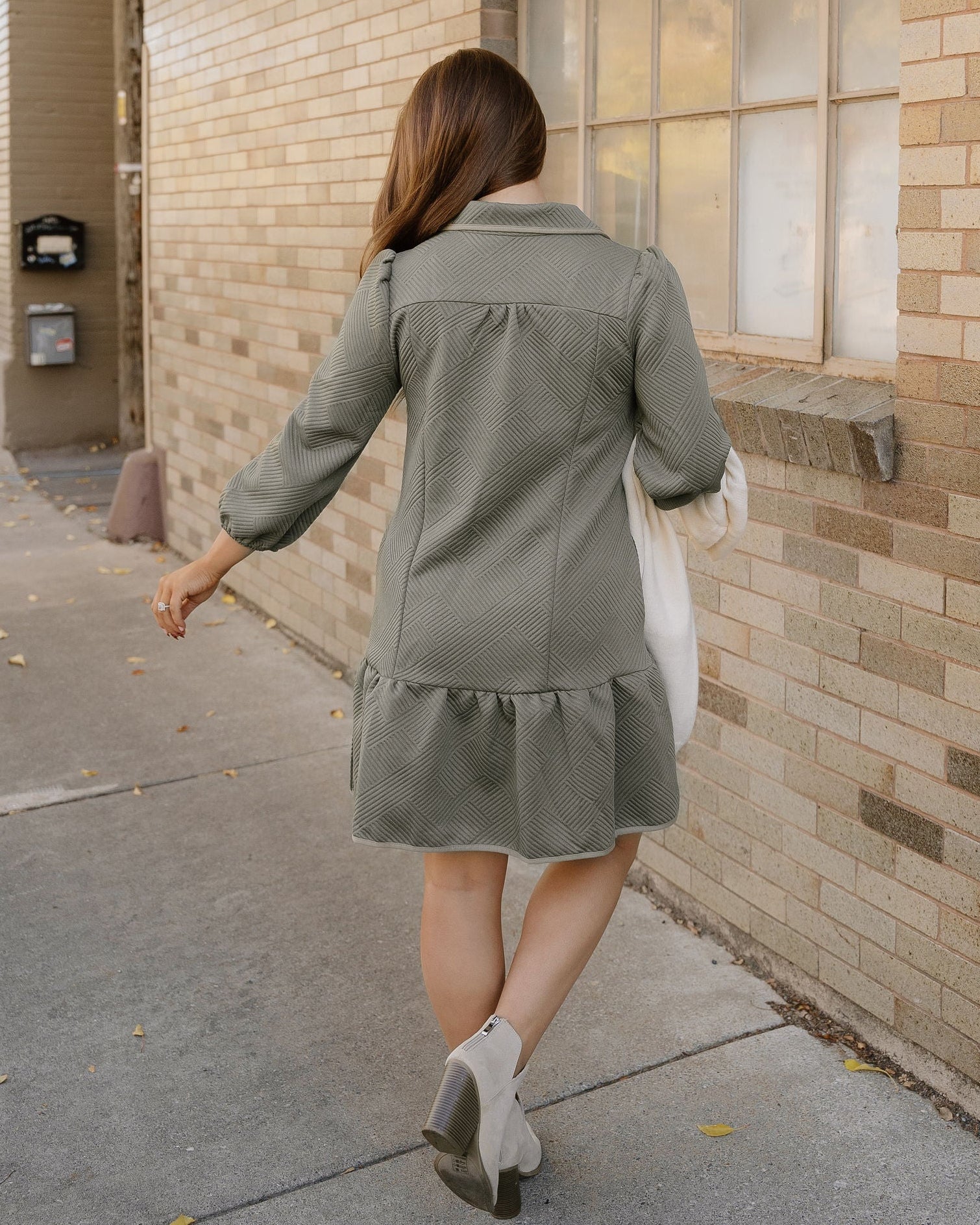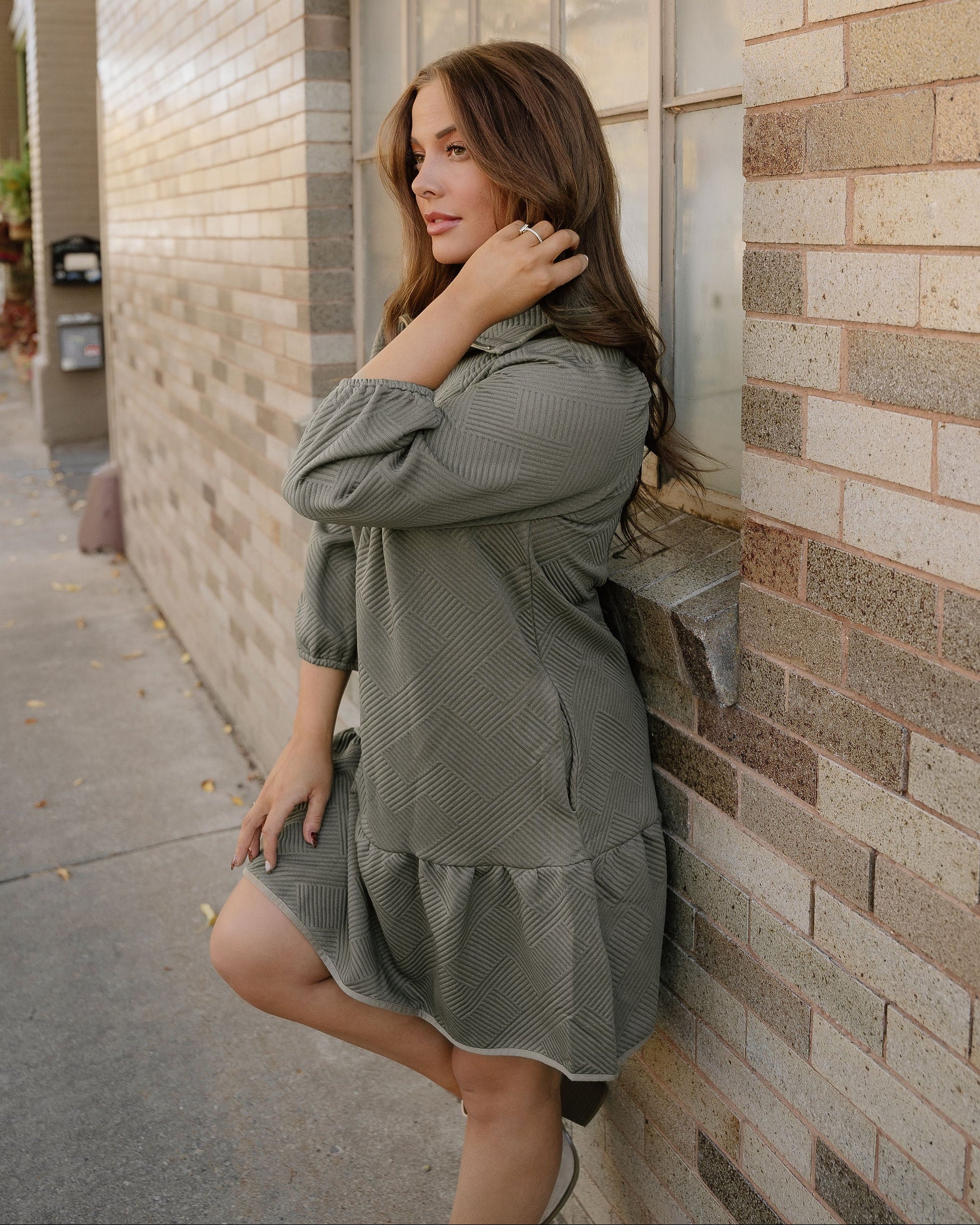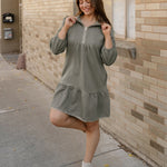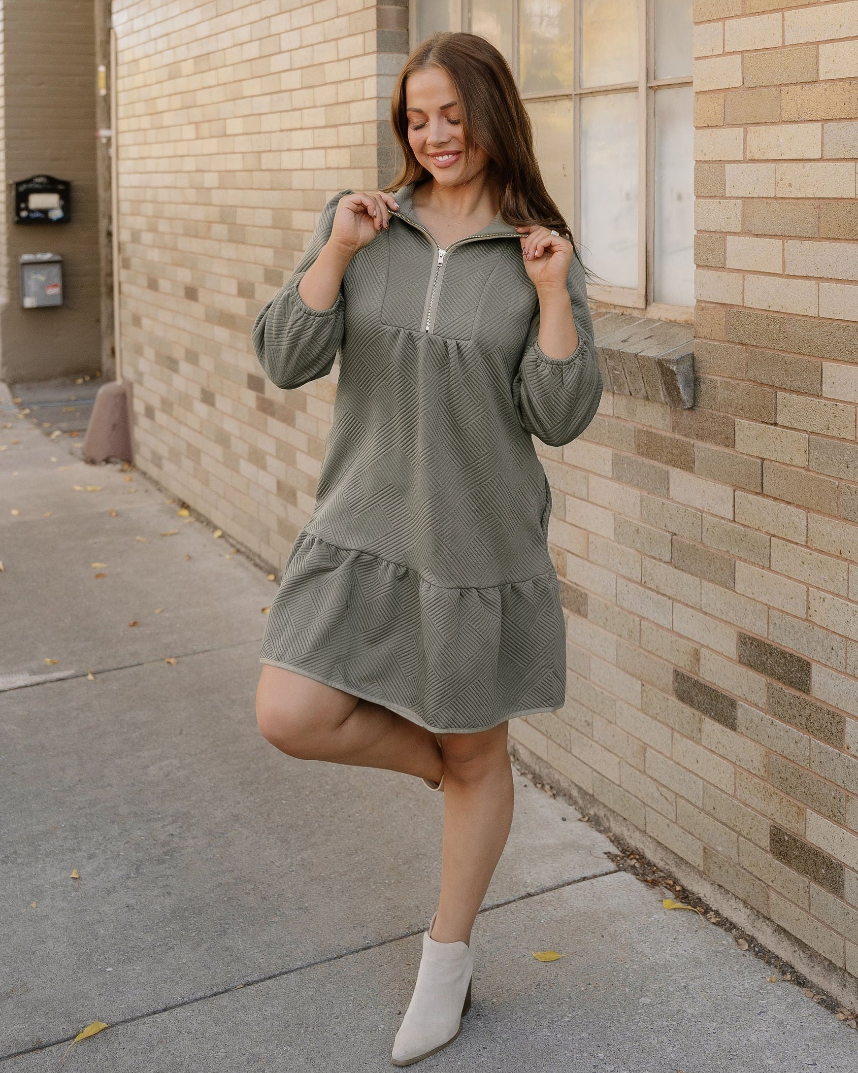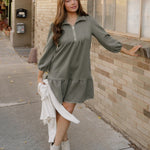 • The quarter zip collar adds a modern touch to this classic mini dress, making it versatile for various styling options.