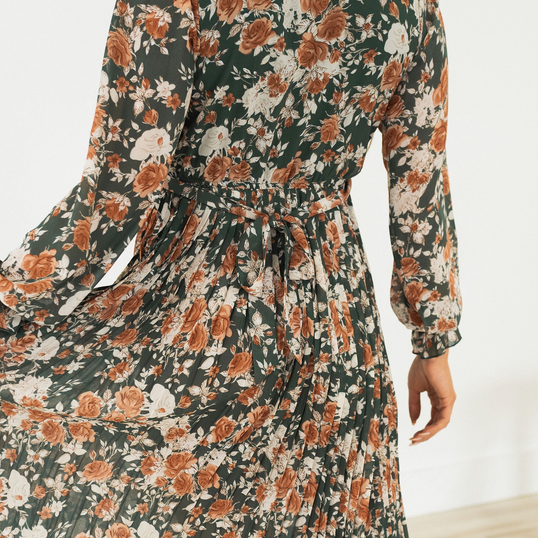 Say hello to the Oaklee Dress - an absolute favorite with our customers! This dress is a must-have in everyone's wardrobe. With the perfect blend of pleats and a timeless floral print, it's an ideal choice for every season. Be it a summer picnic or a fall party, the Oaklee Dress adds a touch of elegance to your style. Hurry and make it yours today!