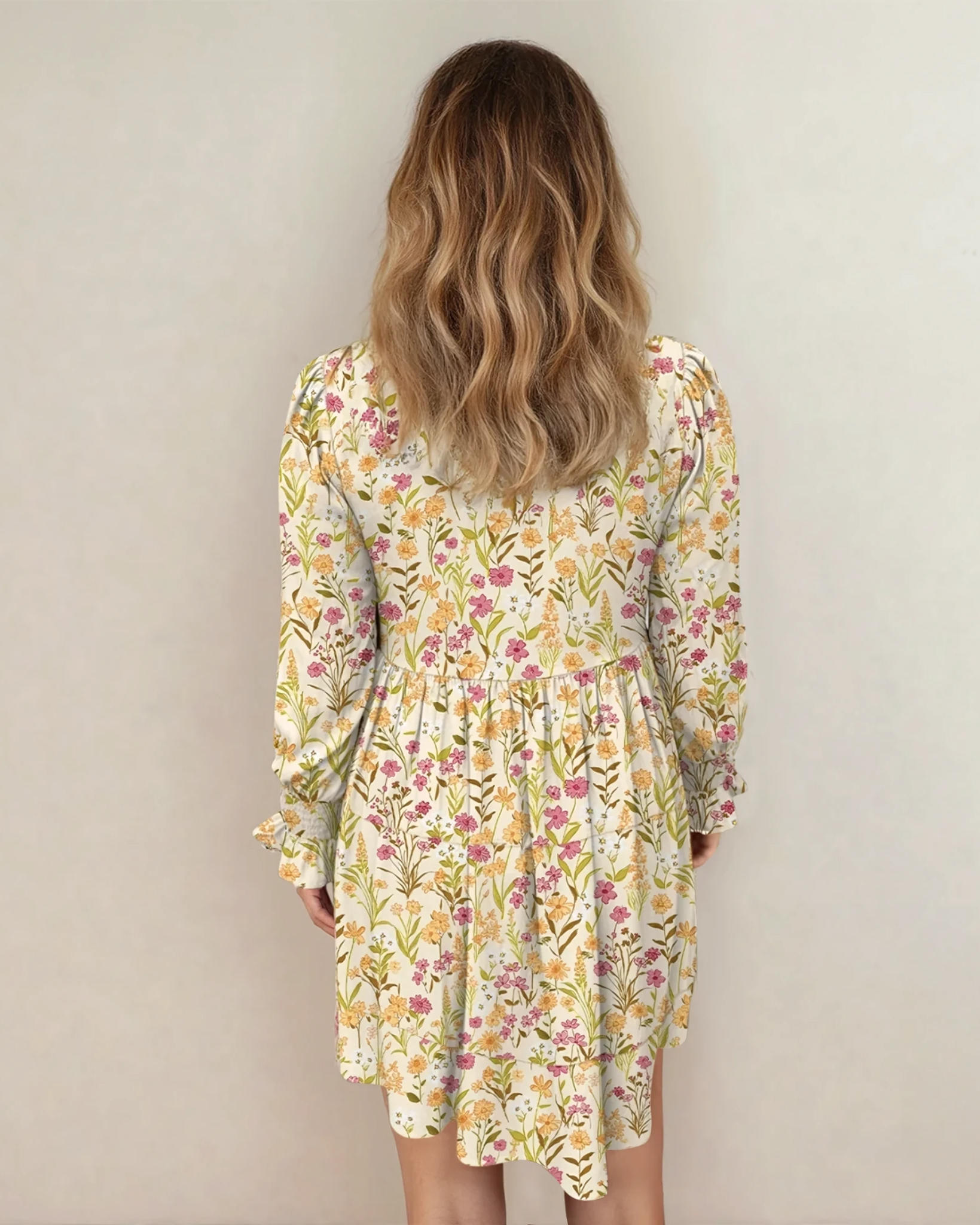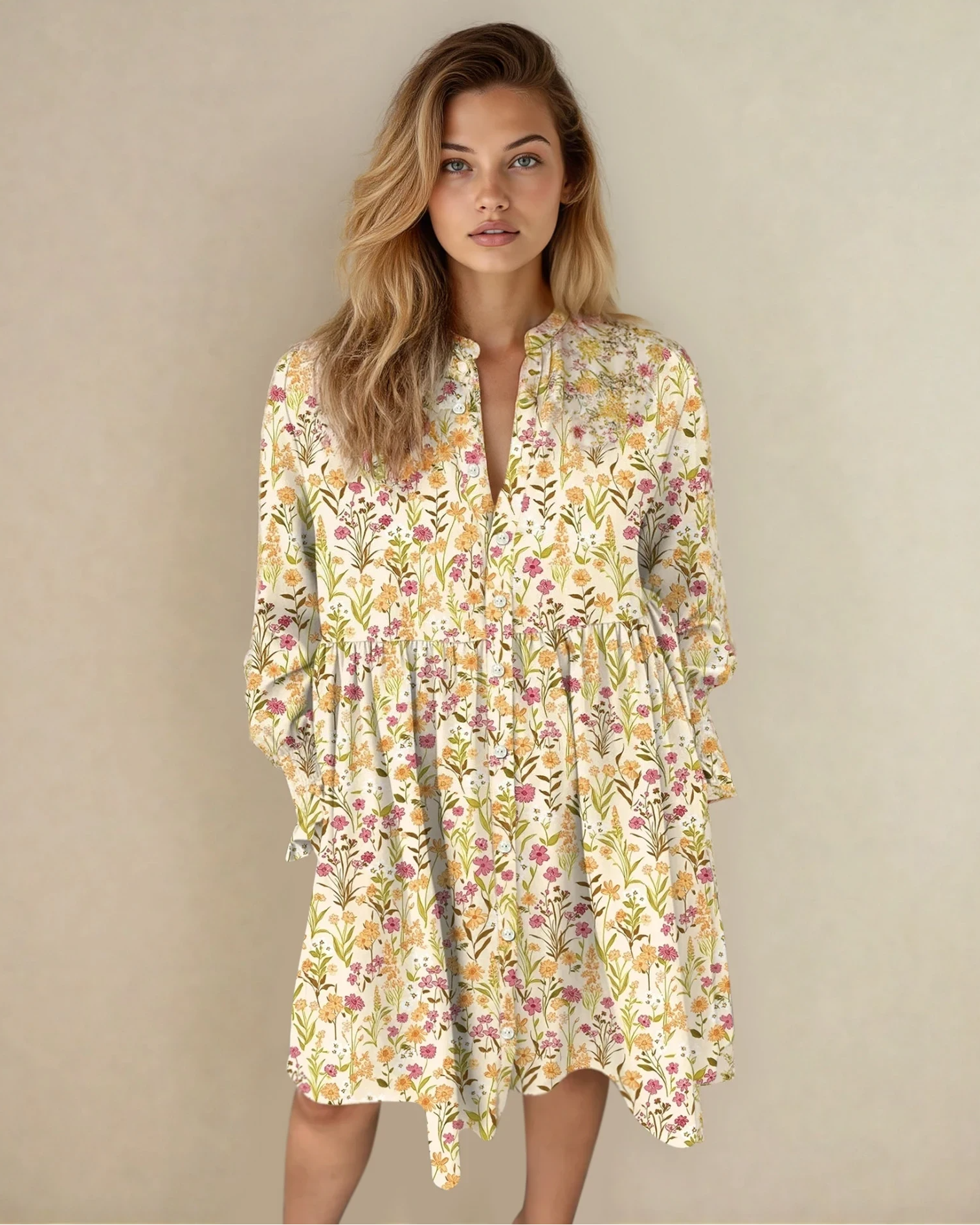 PREORDER Evie Floral Print Frilly Trim Smocked Cuff Long Sleeve Loose Shirt Dress | Dropship