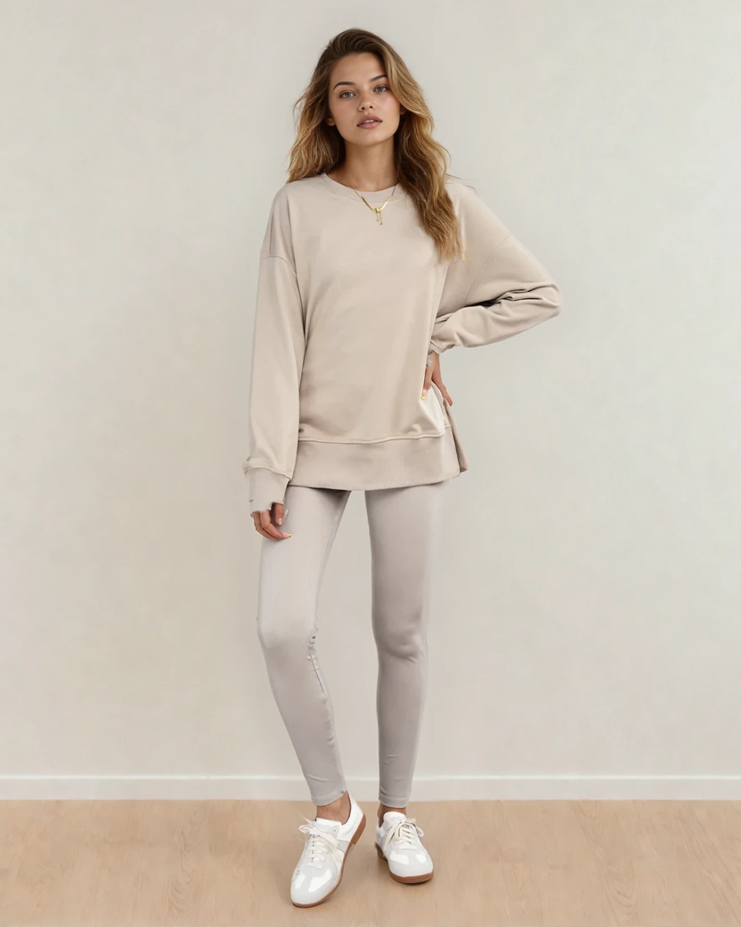 Remi Solid Color Oversize Slit Sweatshirt Ribbed Leggings 2pcs Set - Jet Stream | Dropship
