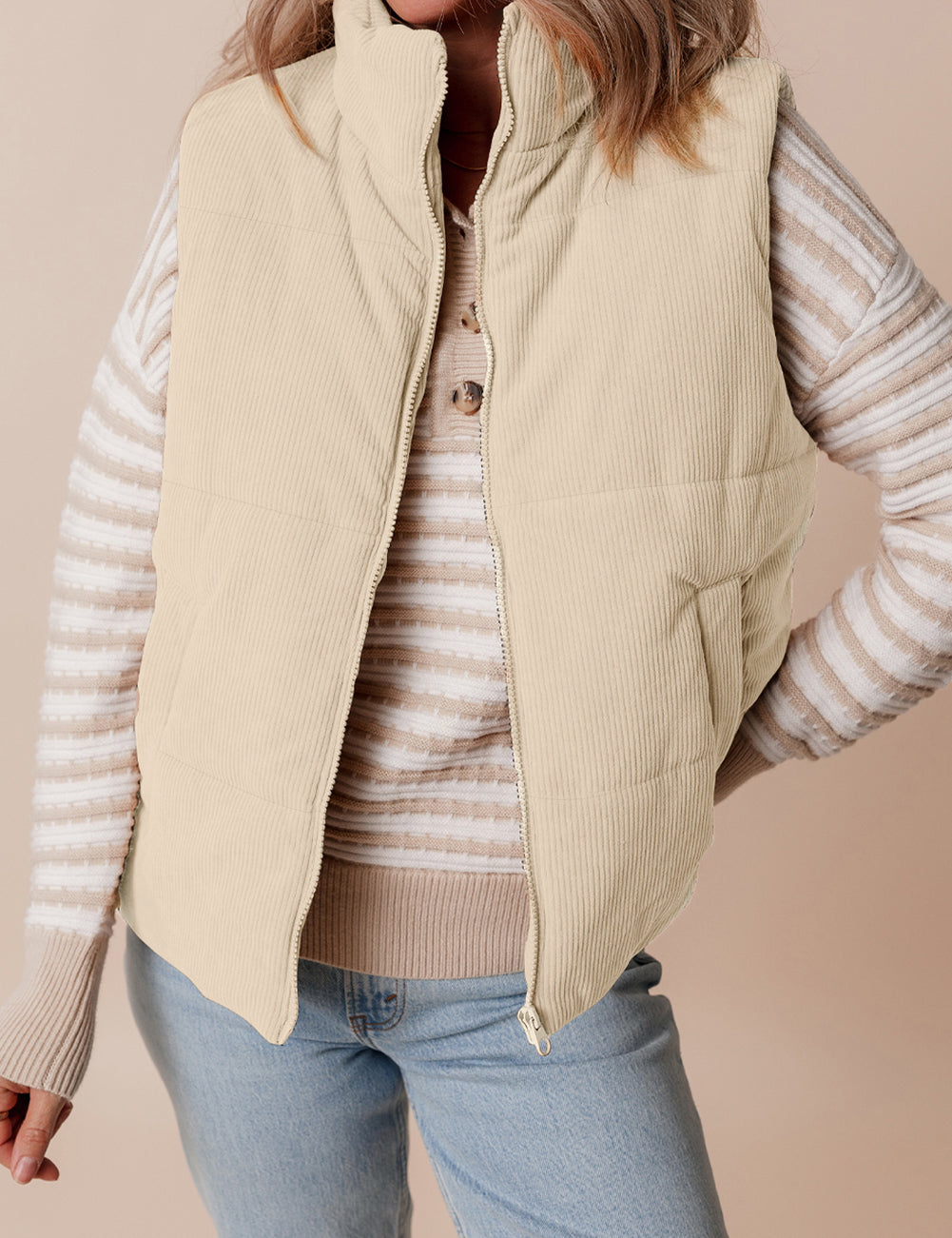 Scottie Solid Color Corduroy Puffer Vest Coat - Beige | Dropship