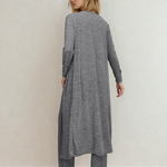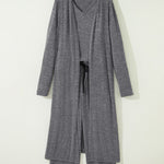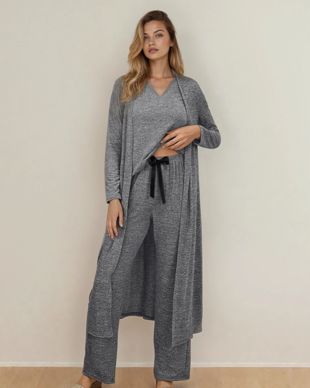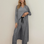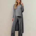 Maggie 3pcs V Neck T Shirt Ribbon Knot Pants Open Duster 3pcs Lounge Set - Gray