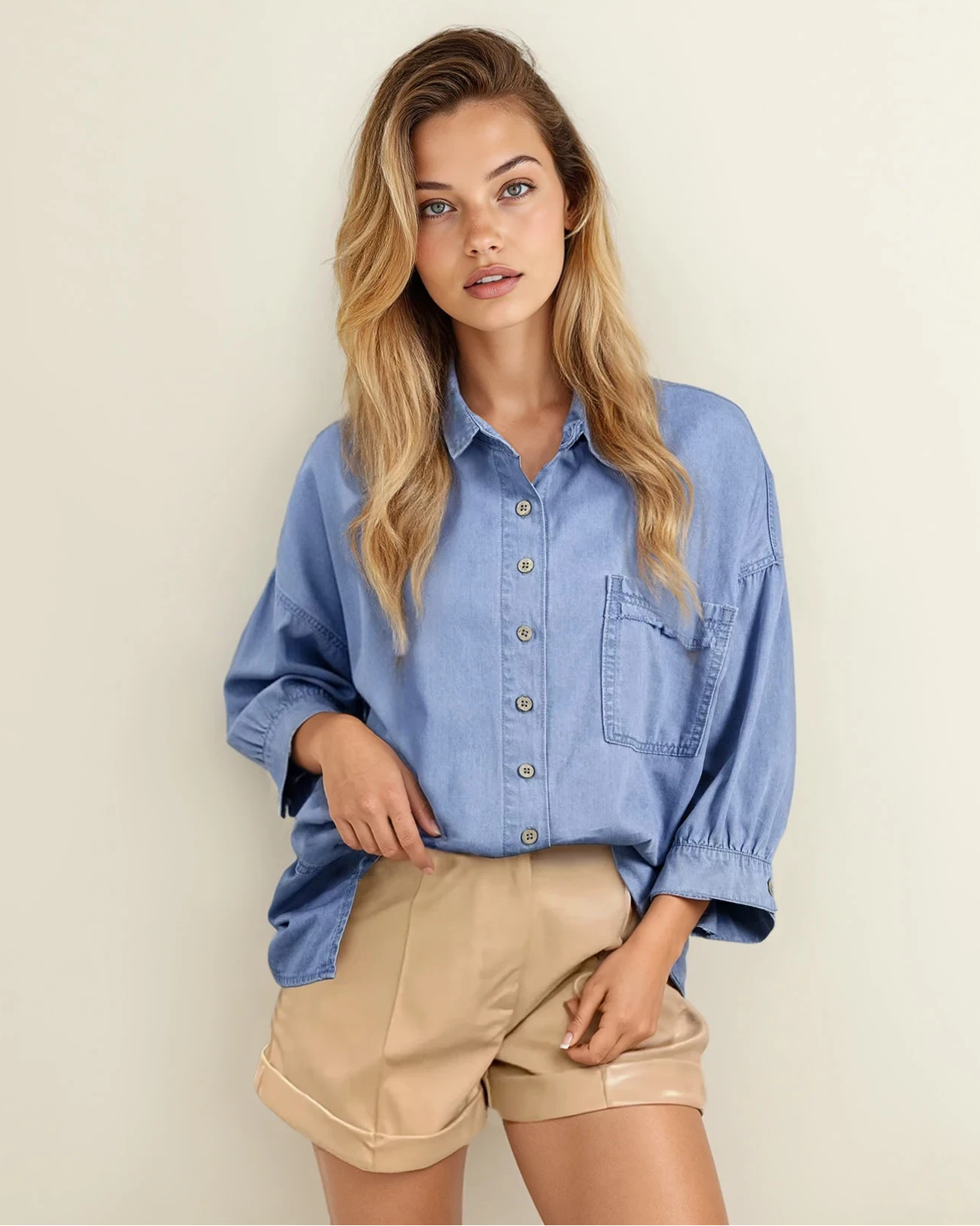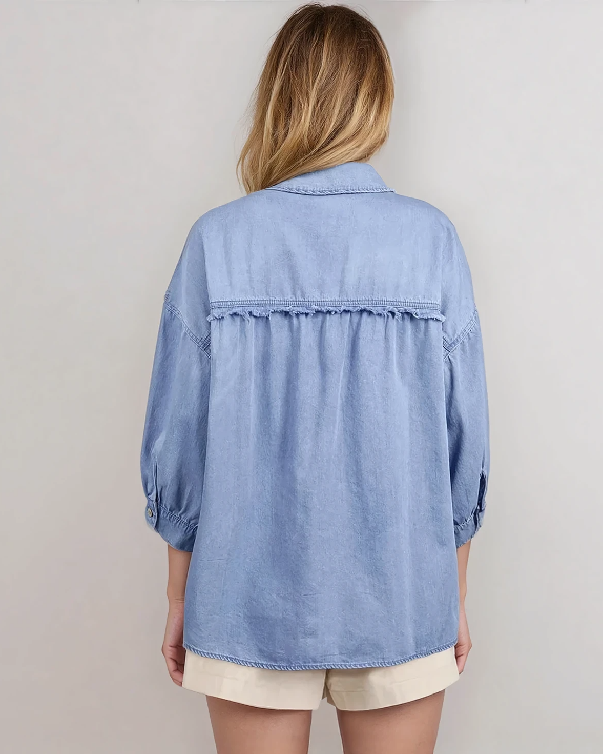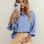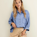 Blake Washed Drop Shoulder Bracelet Sleeve Chambray Shirt
