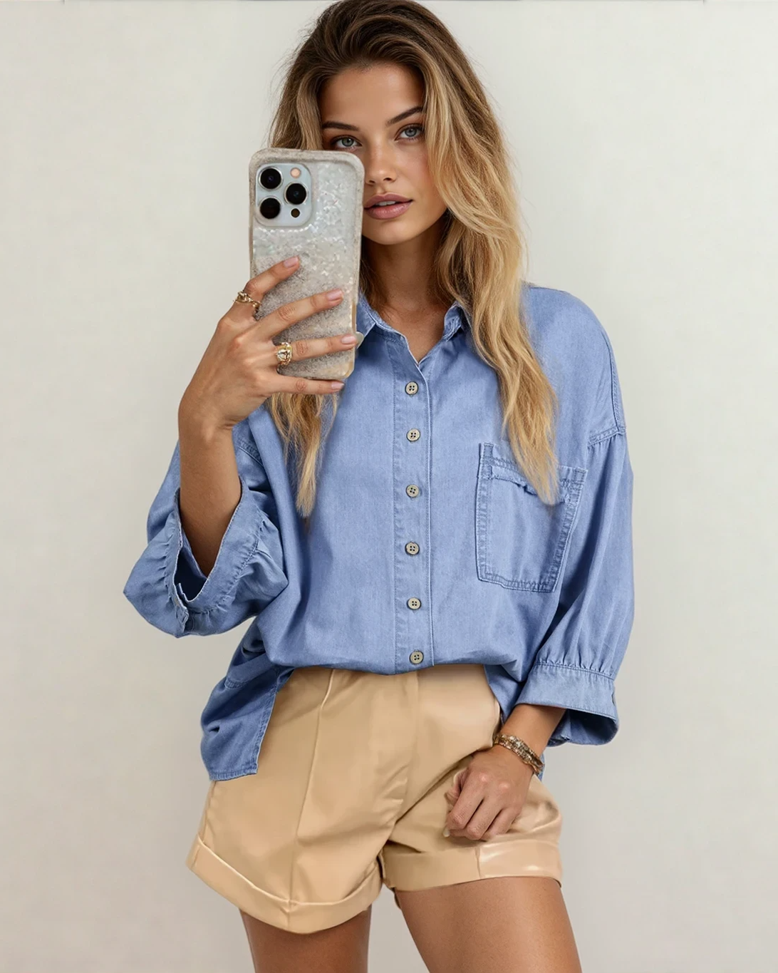 Bracelet sleeves add a polished, feminine touch perfect for casual chic looks.