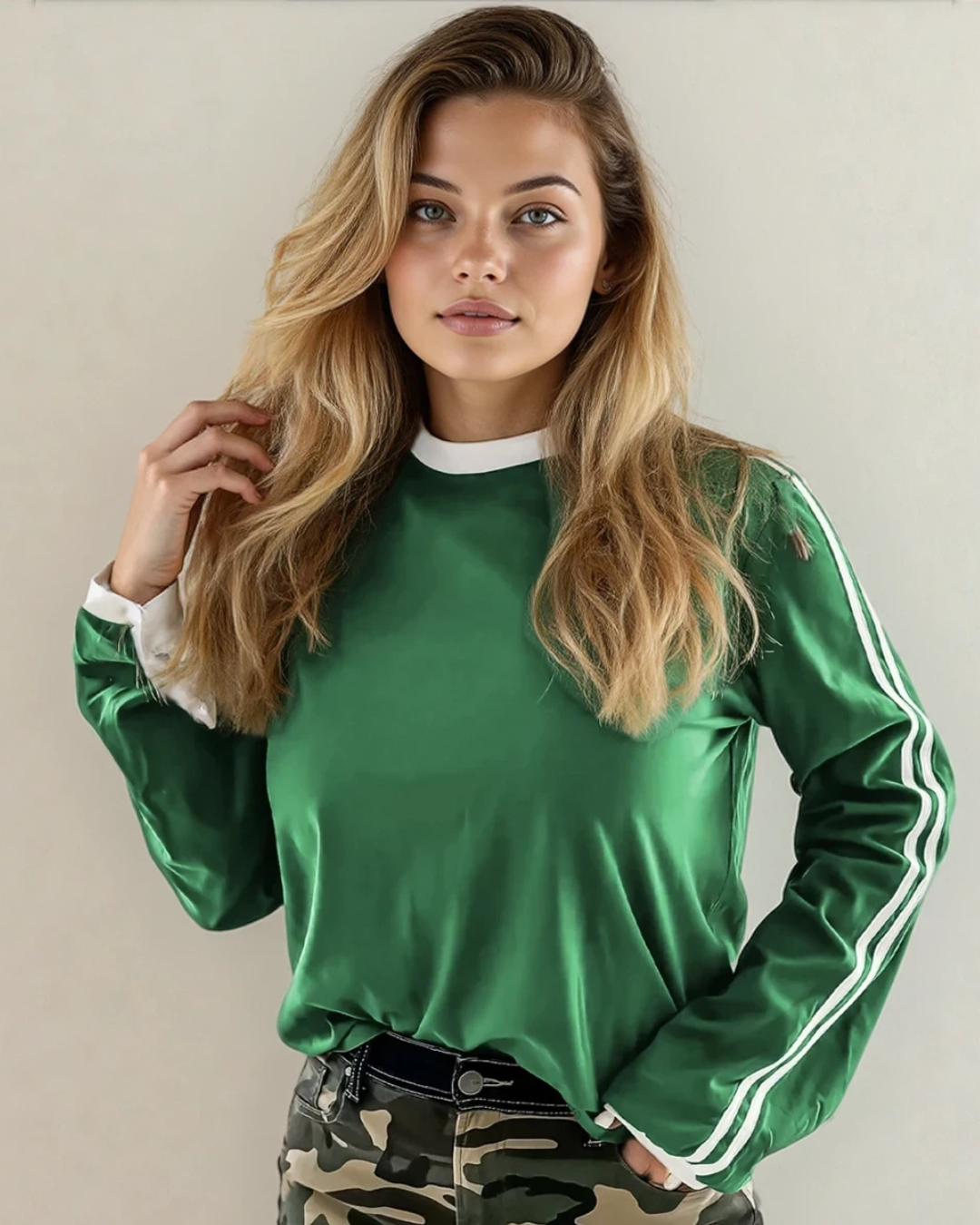 Malani Varsity Striped Crew Neck Long Sleeve Top - Green