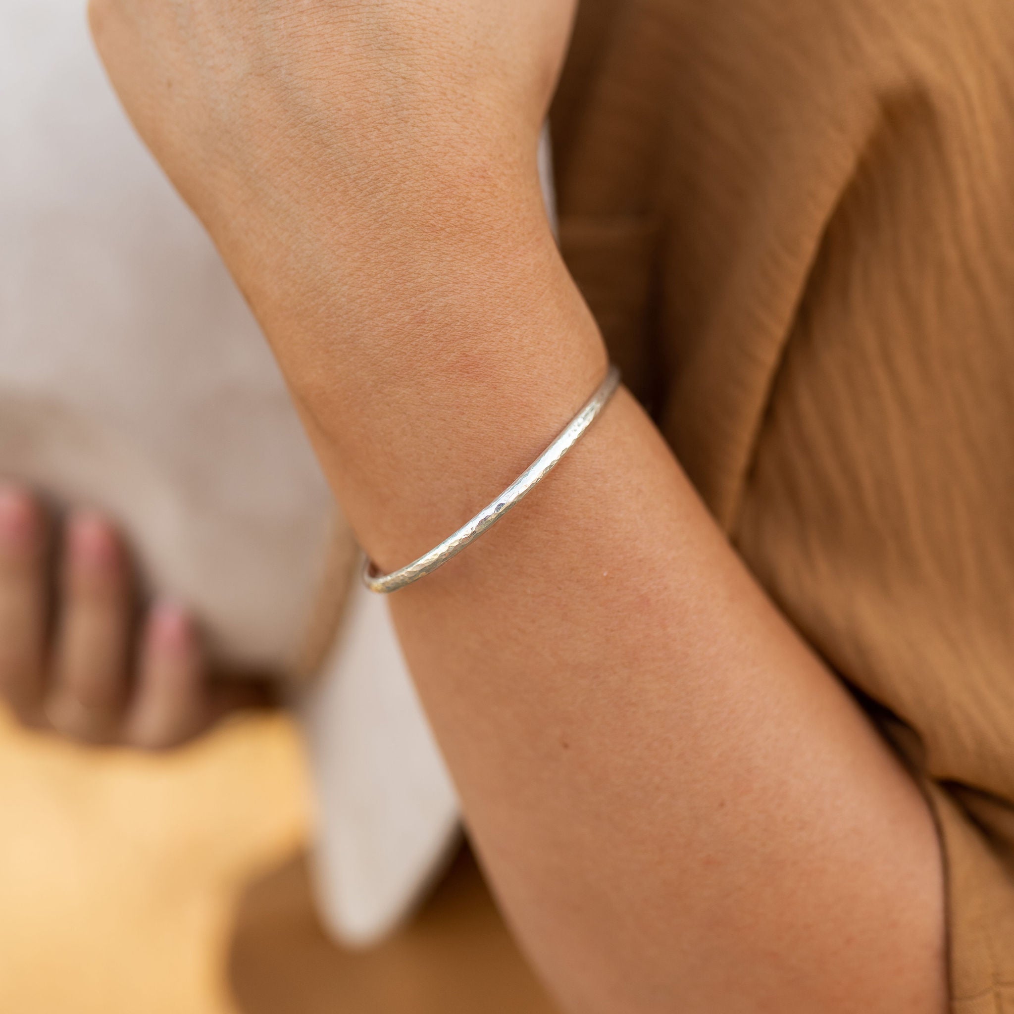 Perfect for layering with other cuffs and bracelets or wearing on its own. This cuff has been given a hammered finish