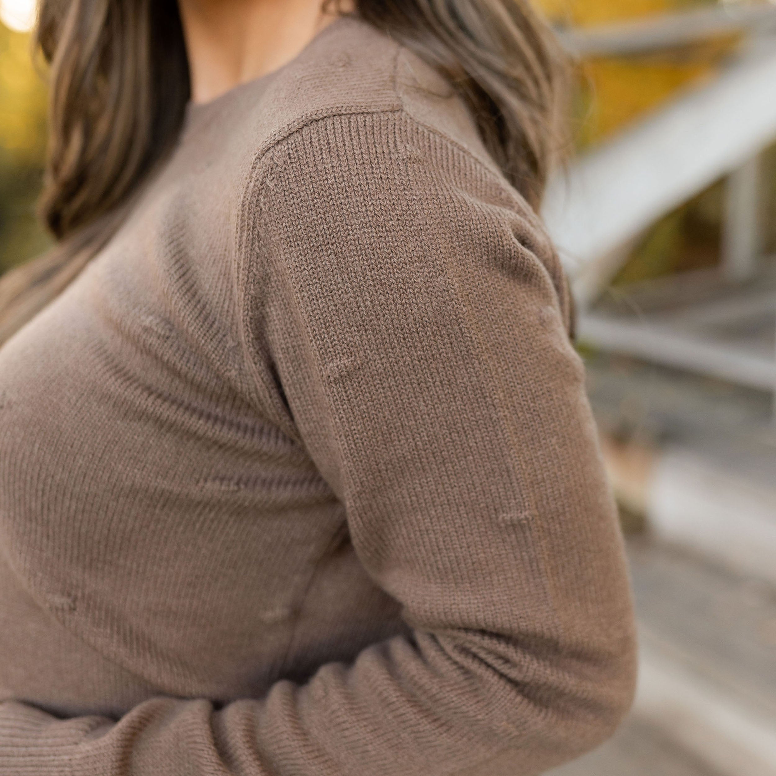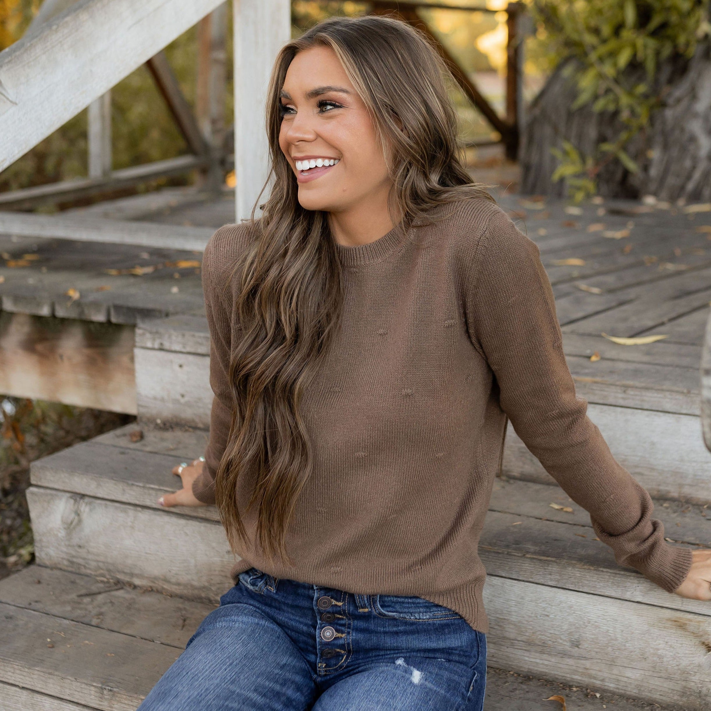 Our Emery Sweater has an adorable polka dot texture to add a little fun to your regular sweater! She looks perfect with your favorite pair of jeans and booties or paired with a skirt.