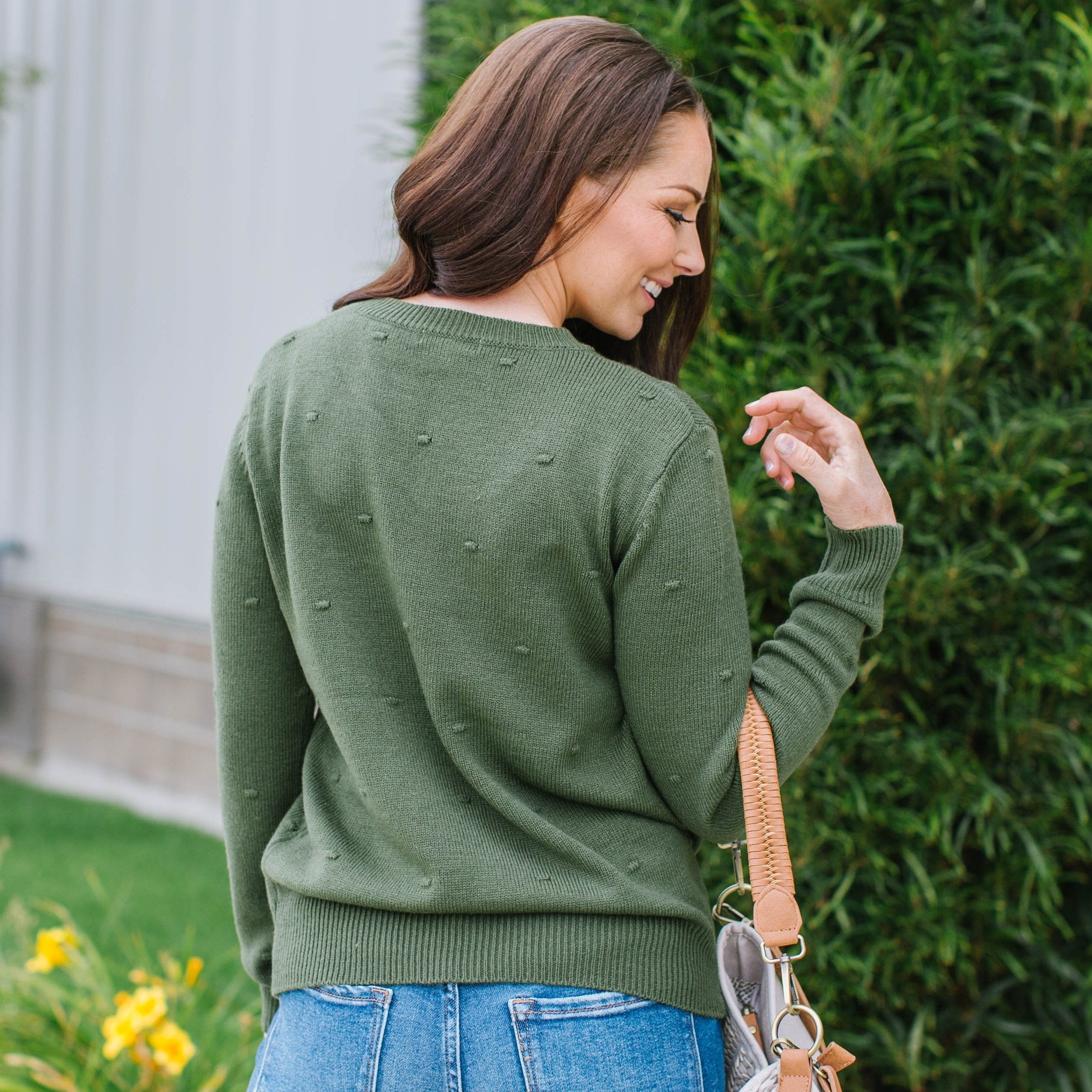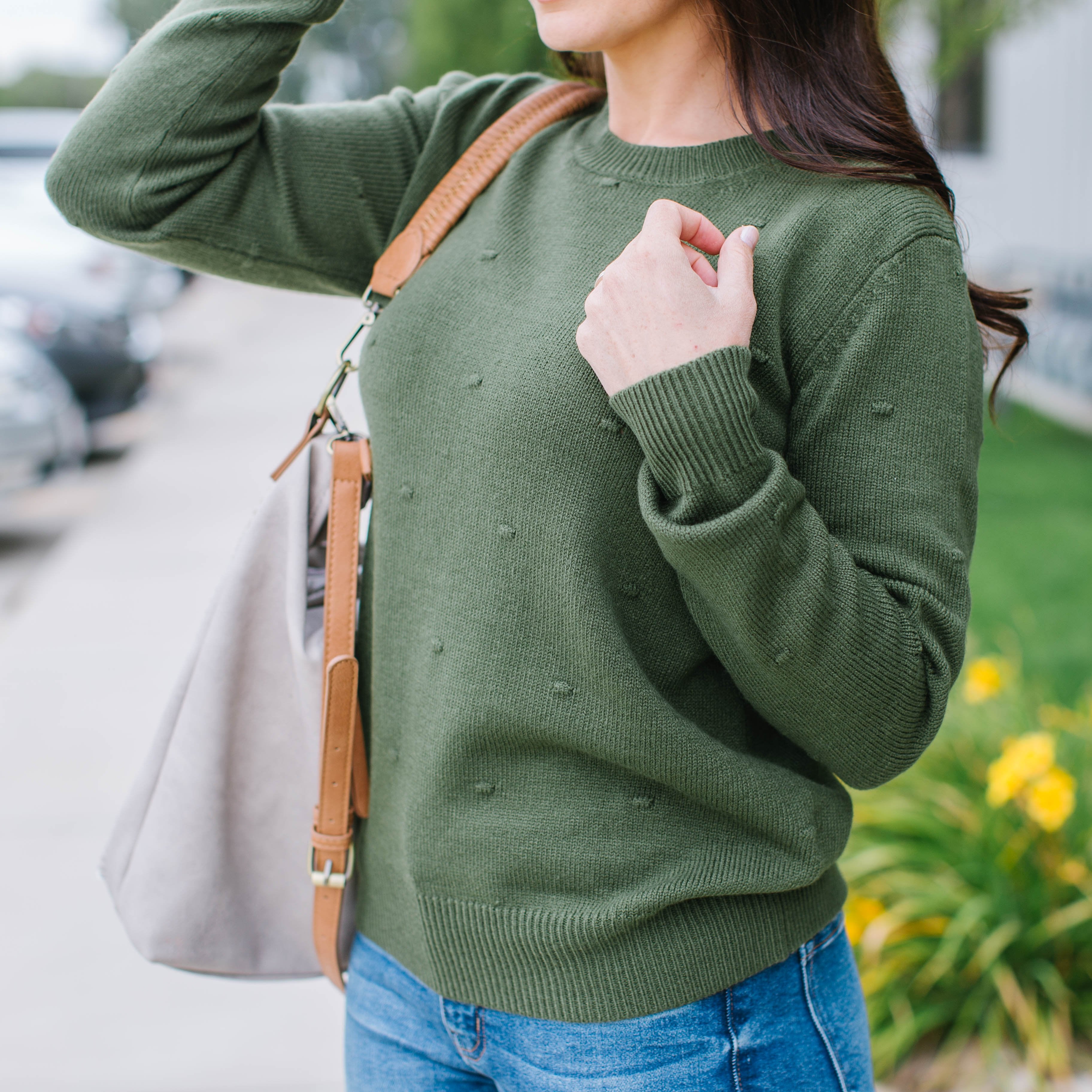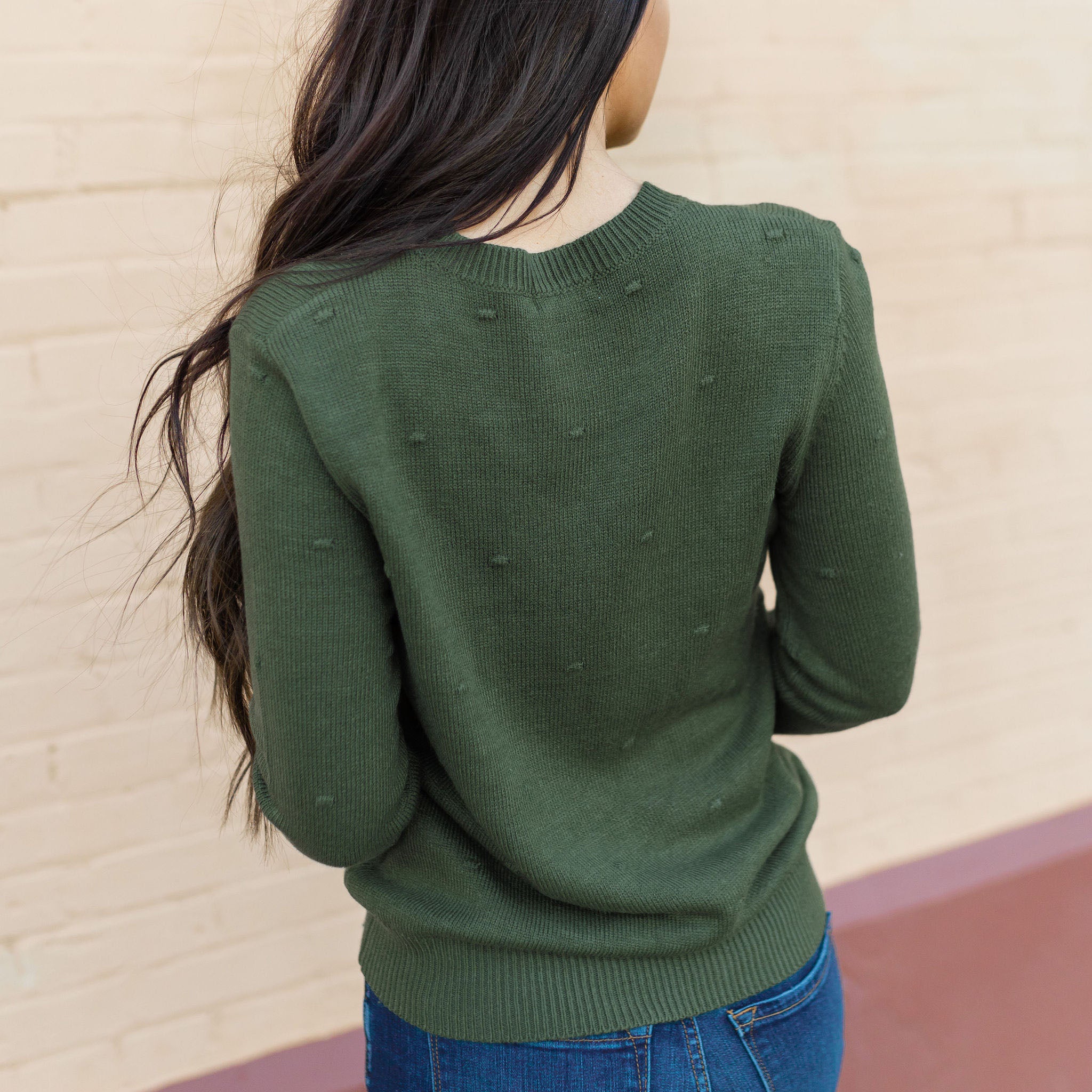 Our Emery Sweater has an adorable polka dot texture to add a little fun to your regular sweater! She looks perfect with your favorite pair of jeans and booties or paired with a skirt.