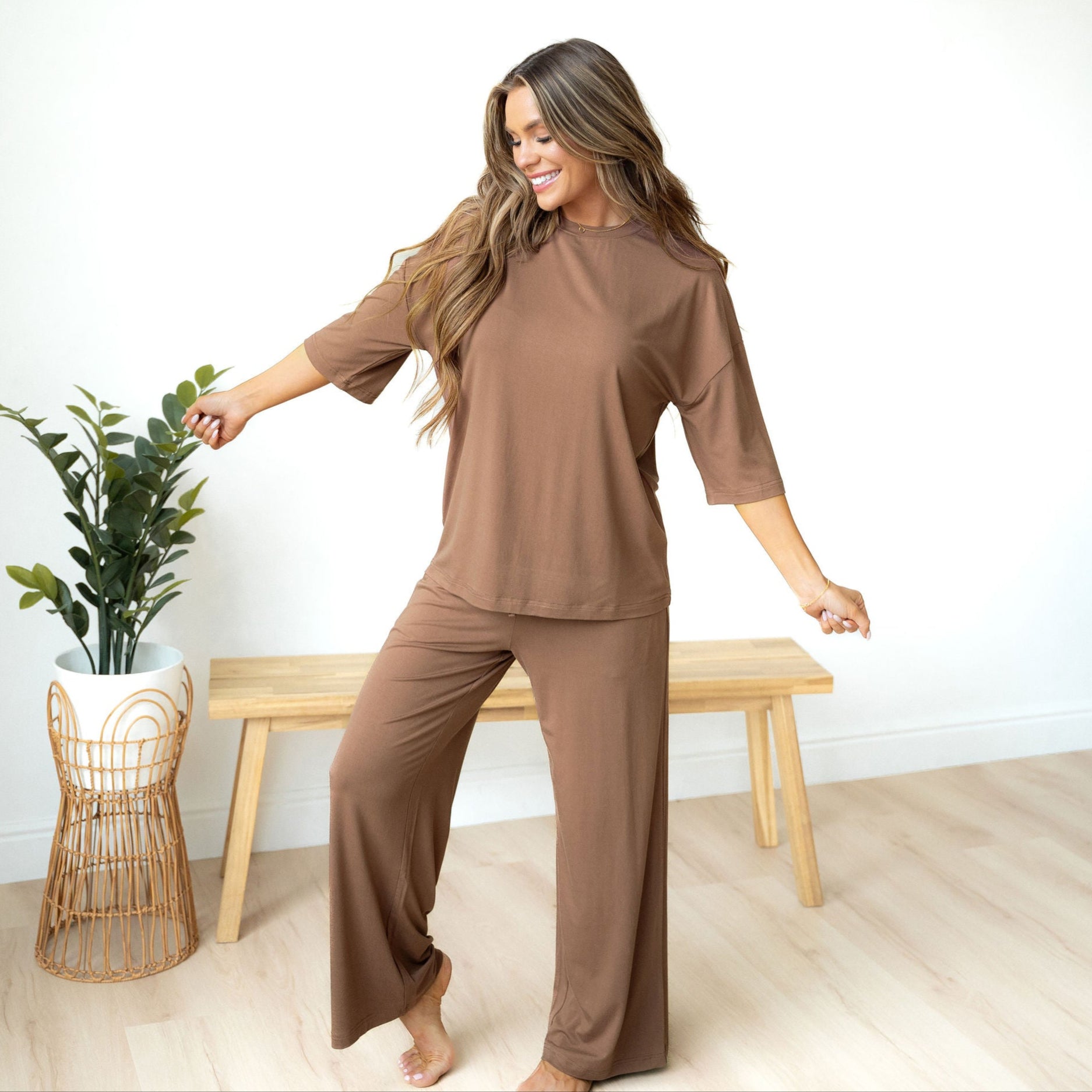 Our Esme Loungewear set is so comfortable and stylish! Perfect for when you are on the go, traveling, running errands, or lounging around the house. You can wear the pieces together or separate!
