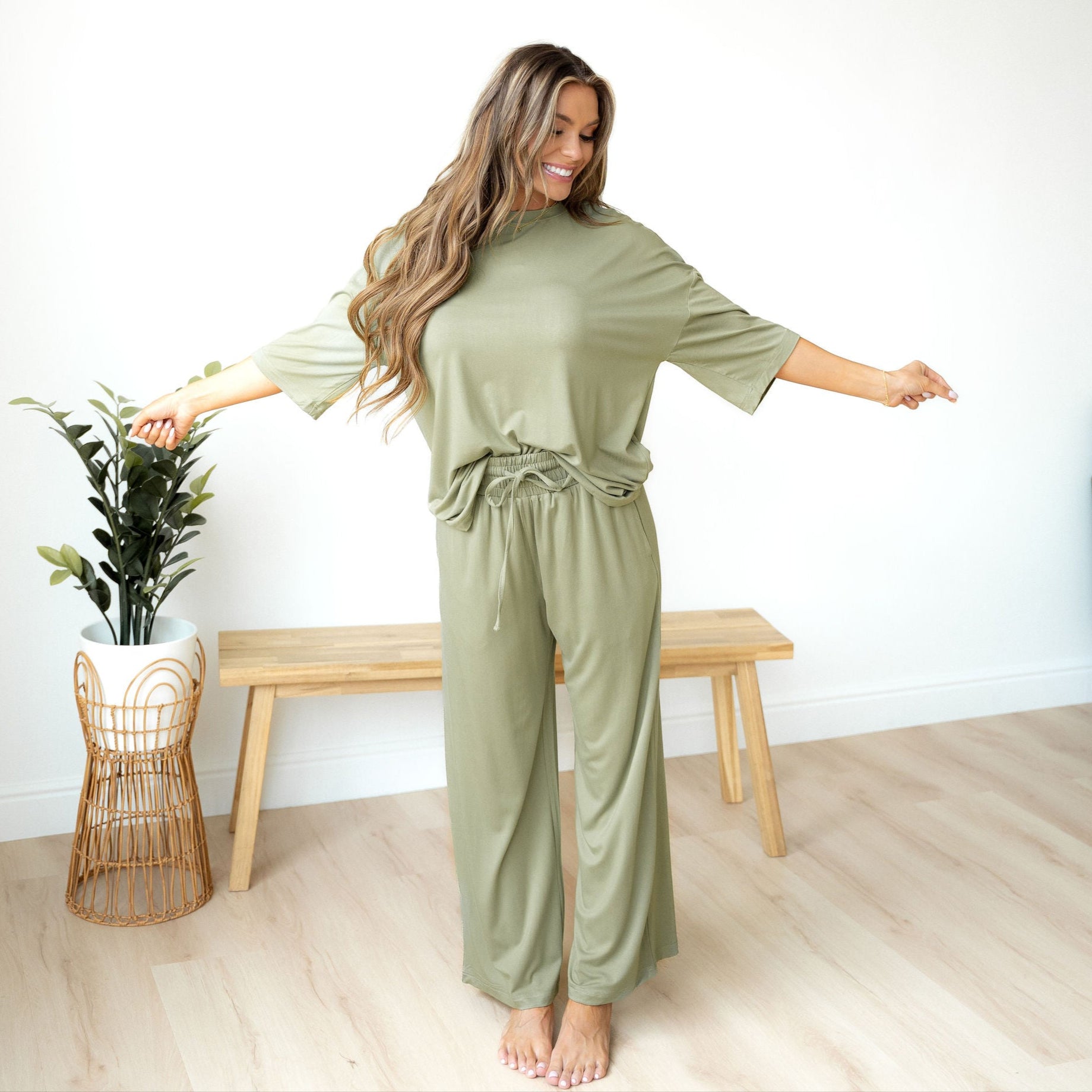 Our Esme Loungewear set is so comfortable and stylish! Perfect for when you are on the go, traveling, running errands, or lounging around the house. You can wear the pieces together or separate!
