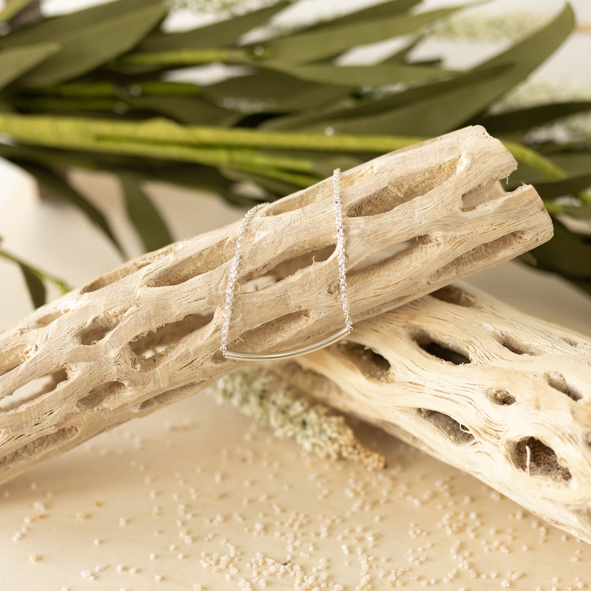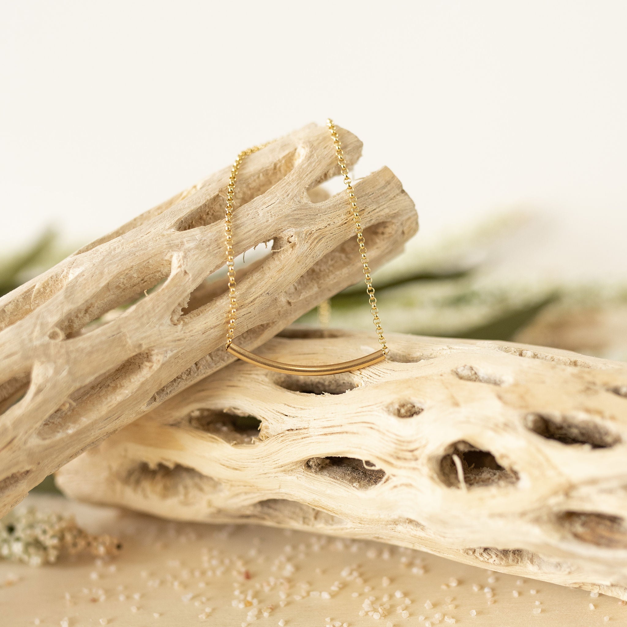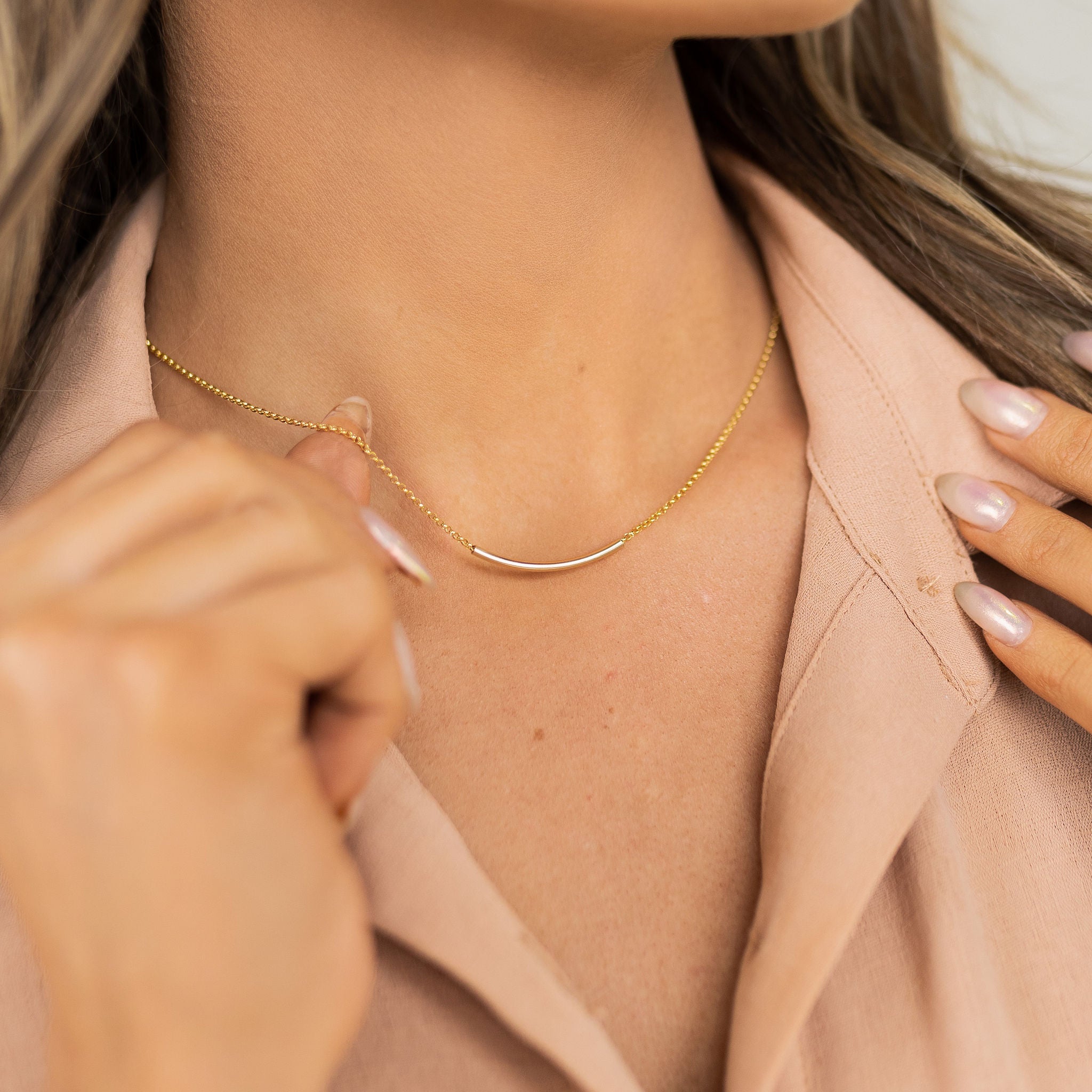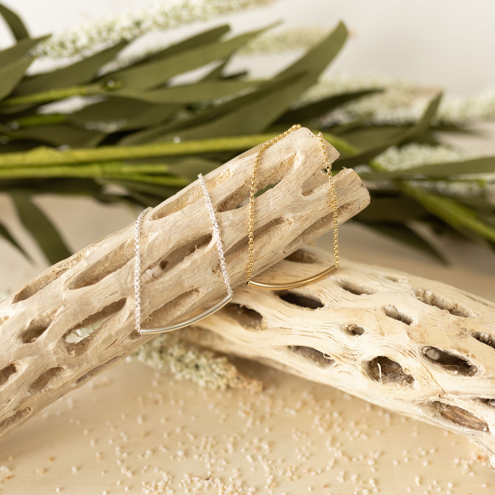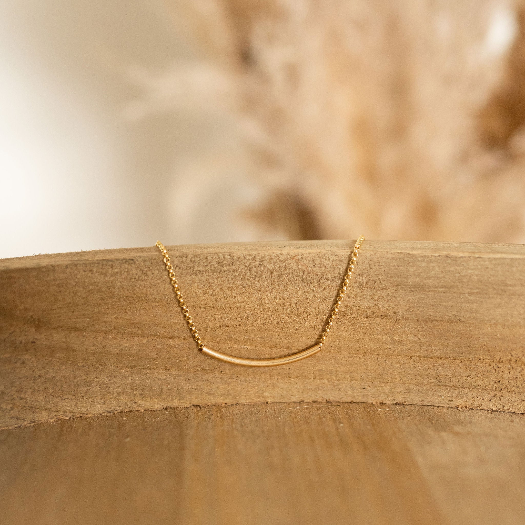 Our Delicate Rolo Chain showcasing an elongated tube bead. Each necklace comes with a 2" extender.