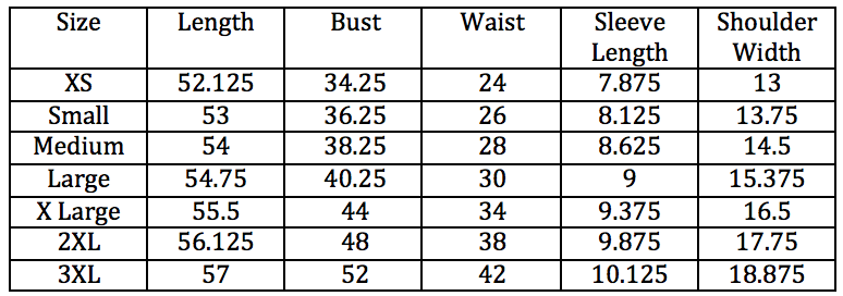 - Size Chart