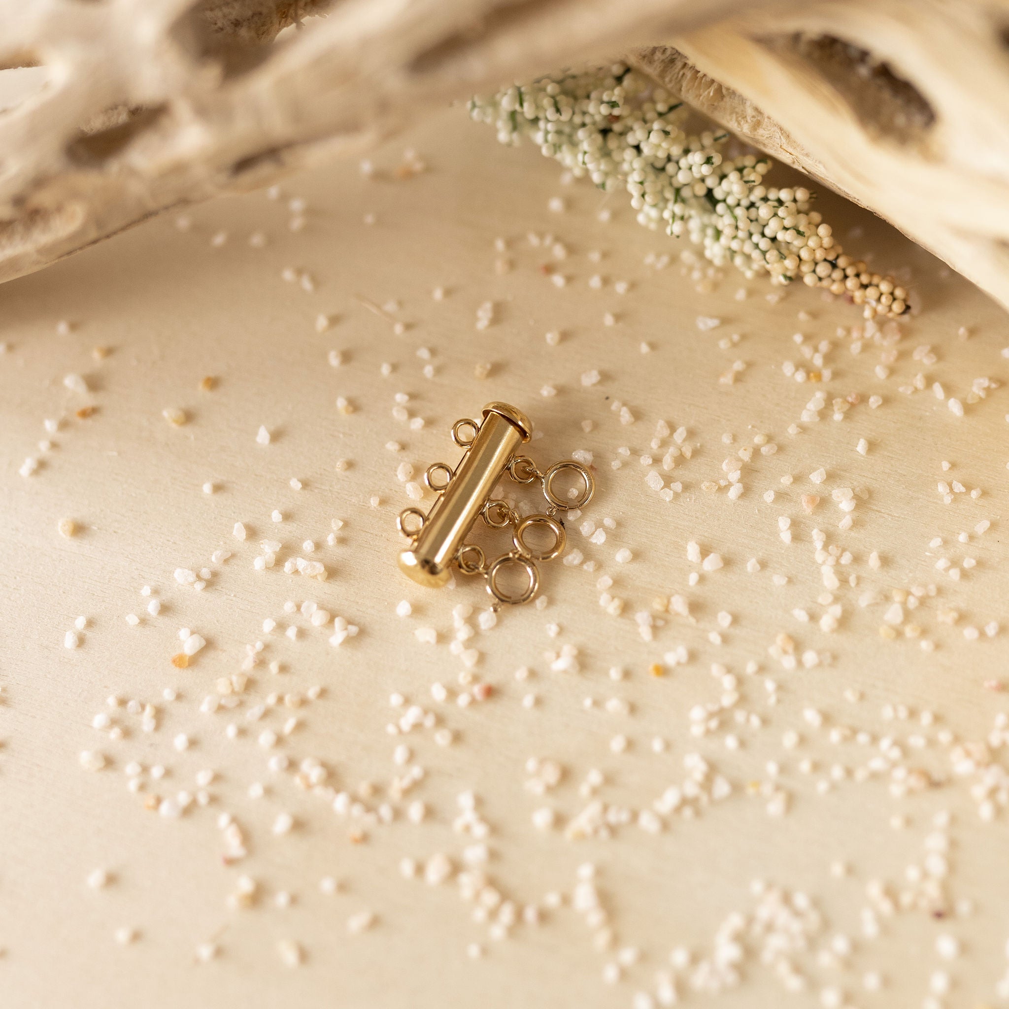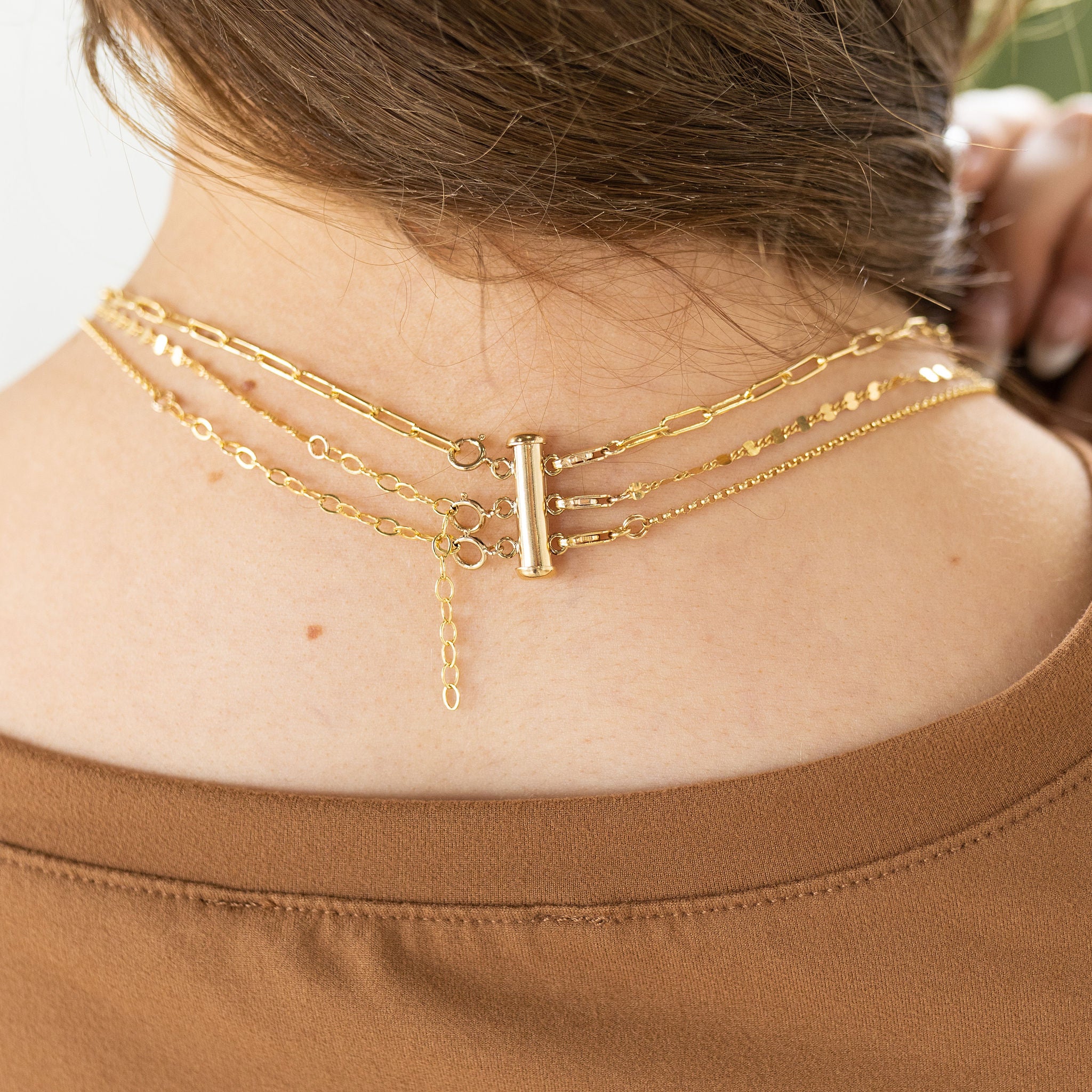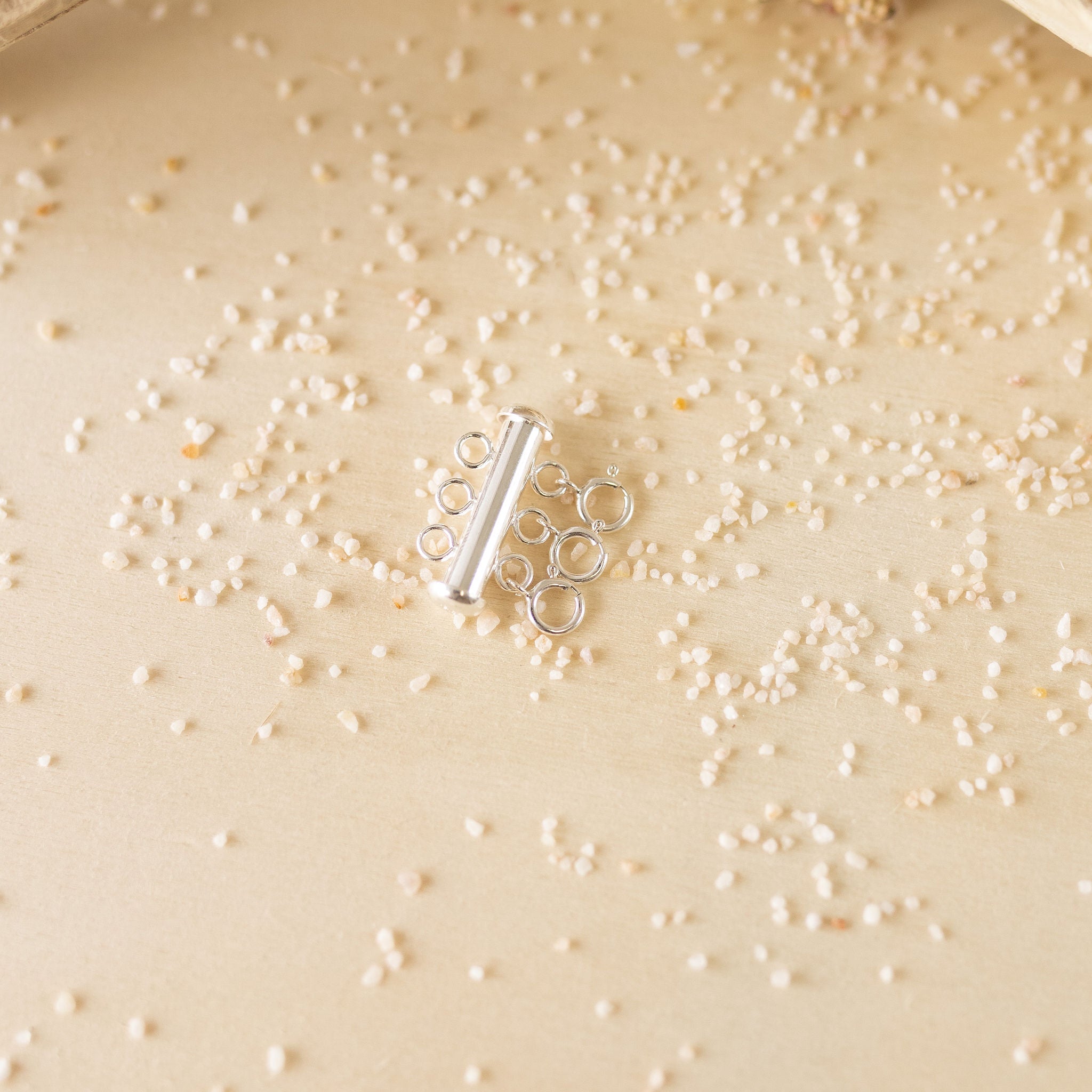 These tube slide clasp makes it easy to create layered looks and switch them up. One side features spring rings while the other features jump rings, spaced to show off chains and necklaces without tangling. The tube clasp offers a strong, secure closure.