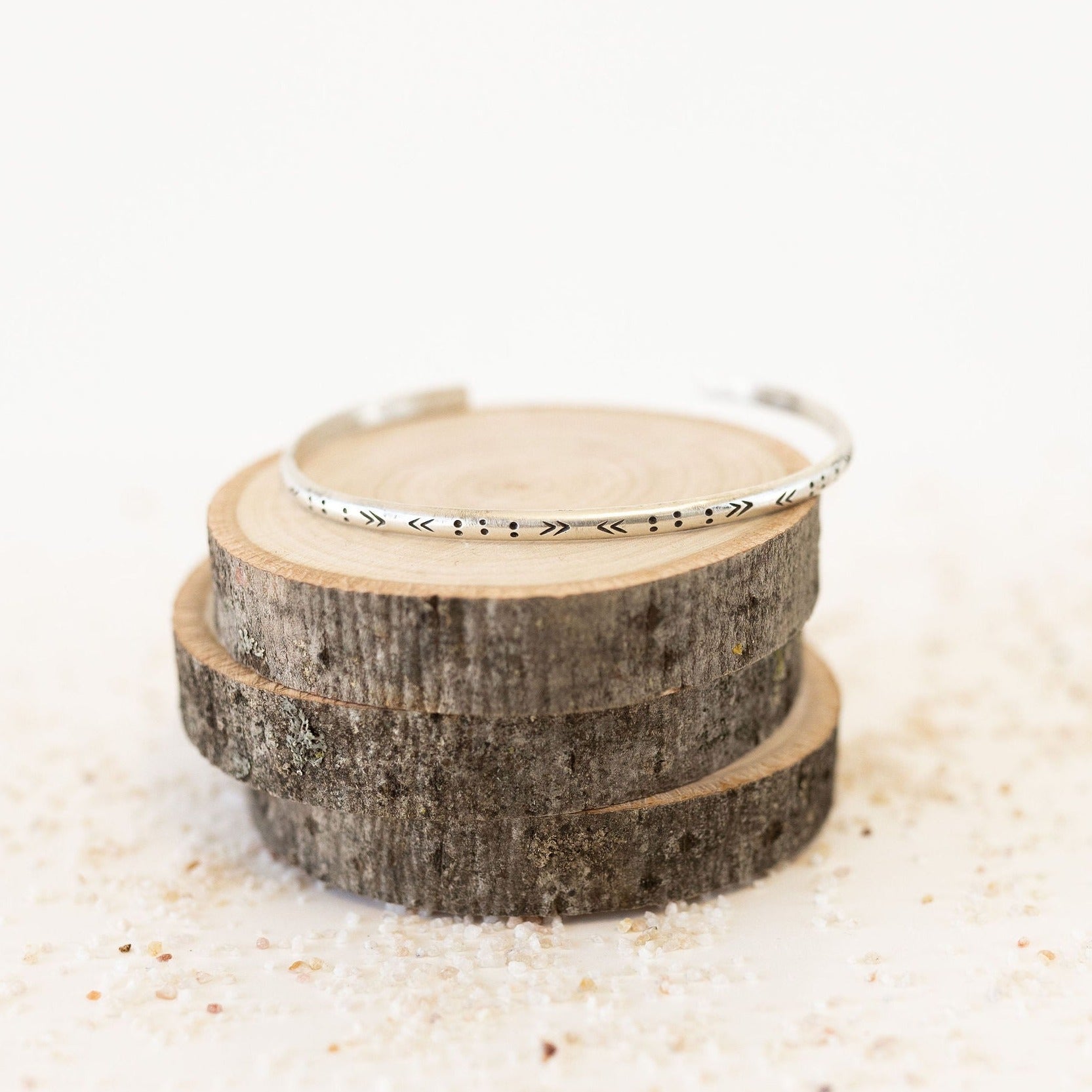 Perfect for layering with other cuffs and bracelets or wearing on its own. These cuffs have been given unique stamping patterns.