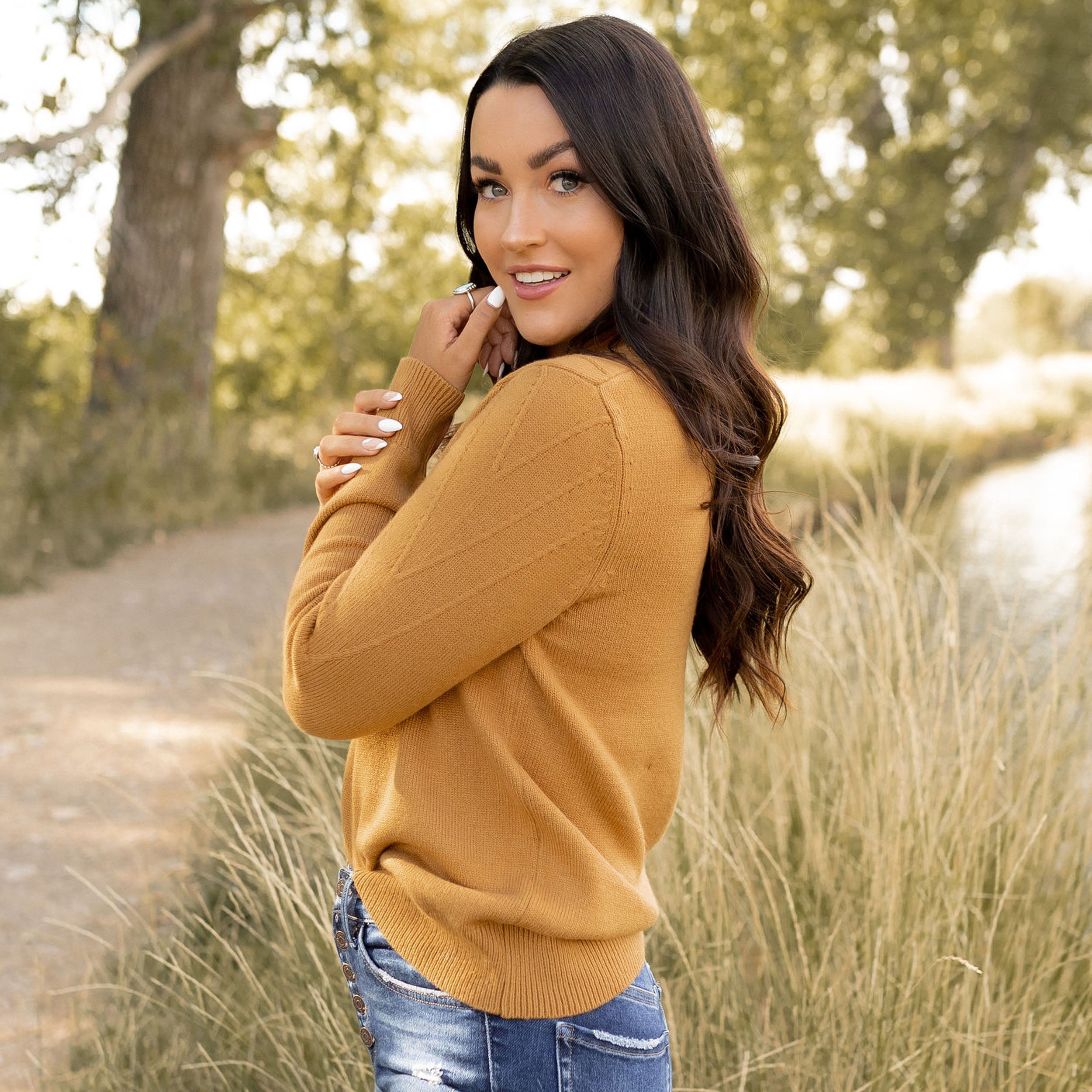 Our Stella sweater features an adorable "V" design on the front and is available in todays hottest colors. Easy for grab and go days or to dress up with your favorite skirt.