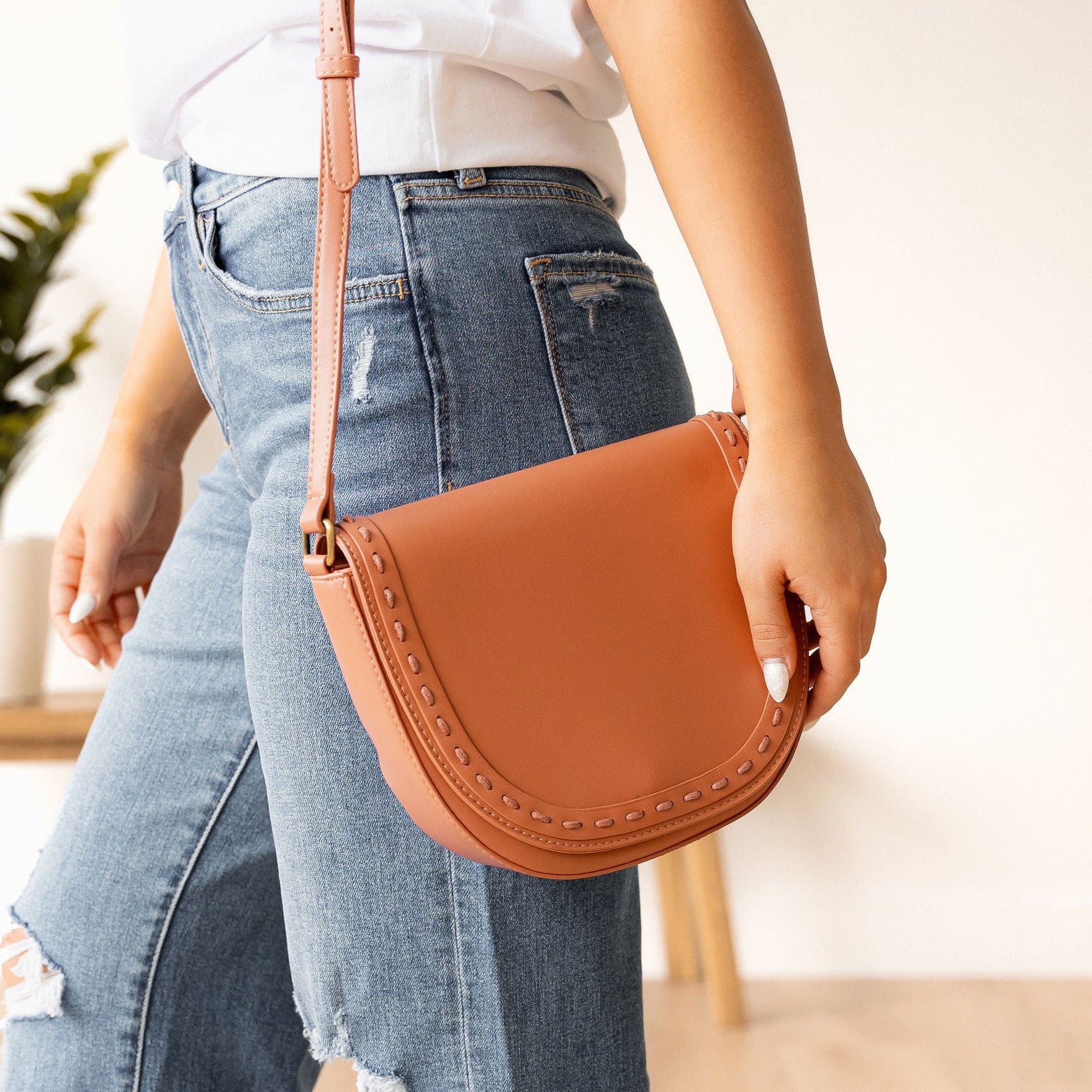 - Fashion Stitch Flap Saddle Crossbody Bag