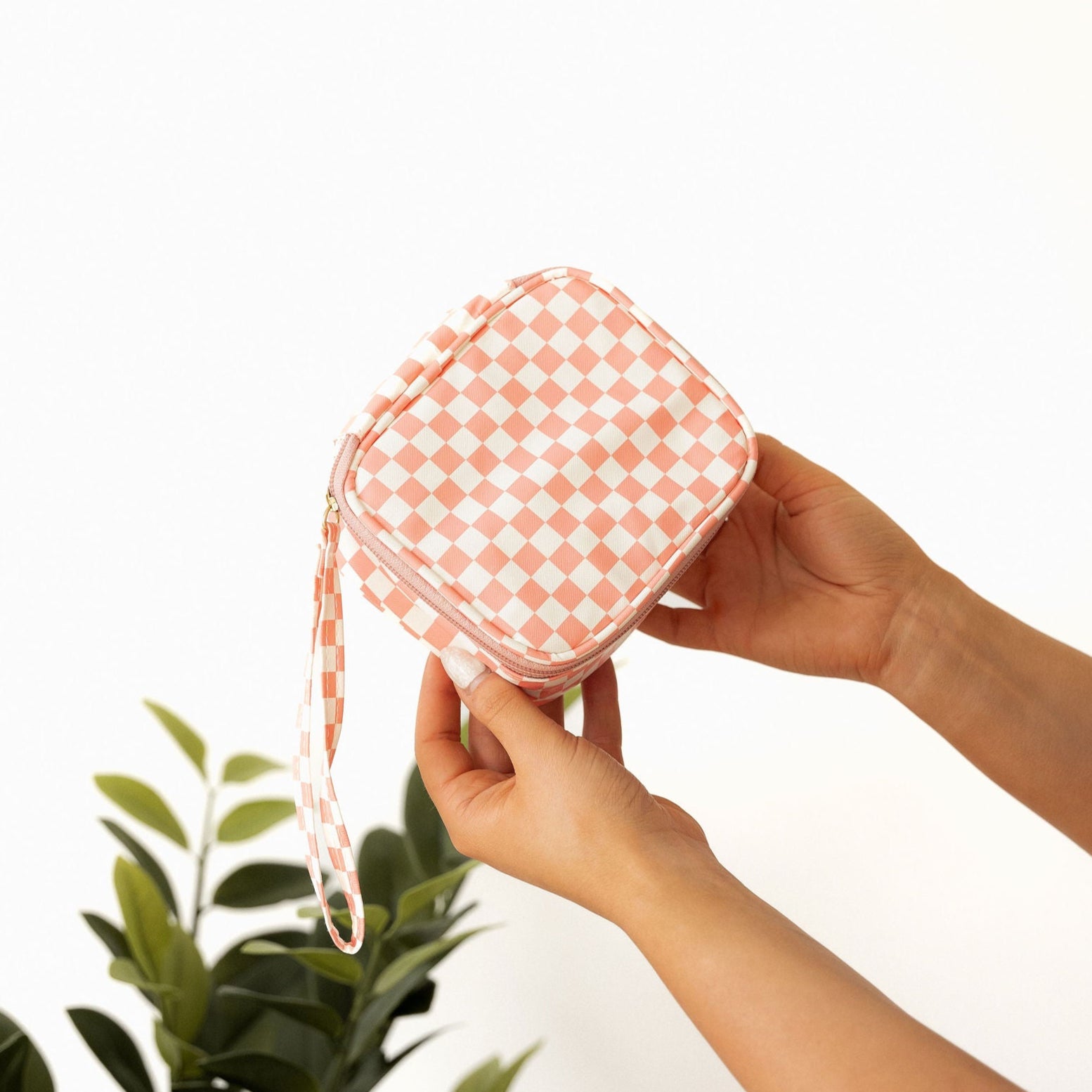 Checkered Cosmetic Travel Case - Pink