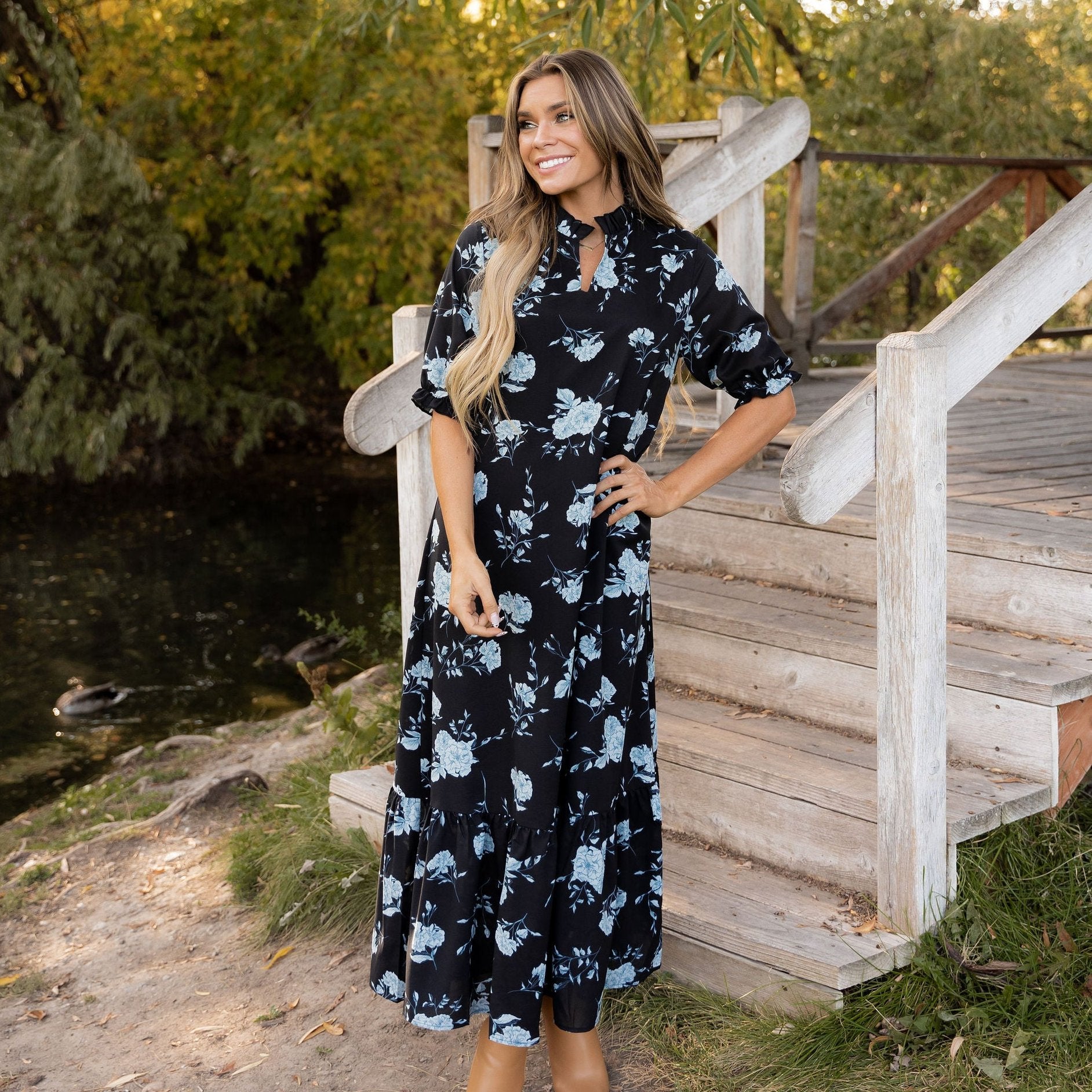 Looking for a dress that's equal parts style and comfort? Look no further! Our Winnie Dress is the perfect addition to your wardrobe. This flowy and fashionable piece features a V neck and ruffle sleeves that'll make you feel like a million bucks. Plus, the ankle length ensures it's both flattering and easy to wear. Check out our collection and get ready to turn heads wherever you go!